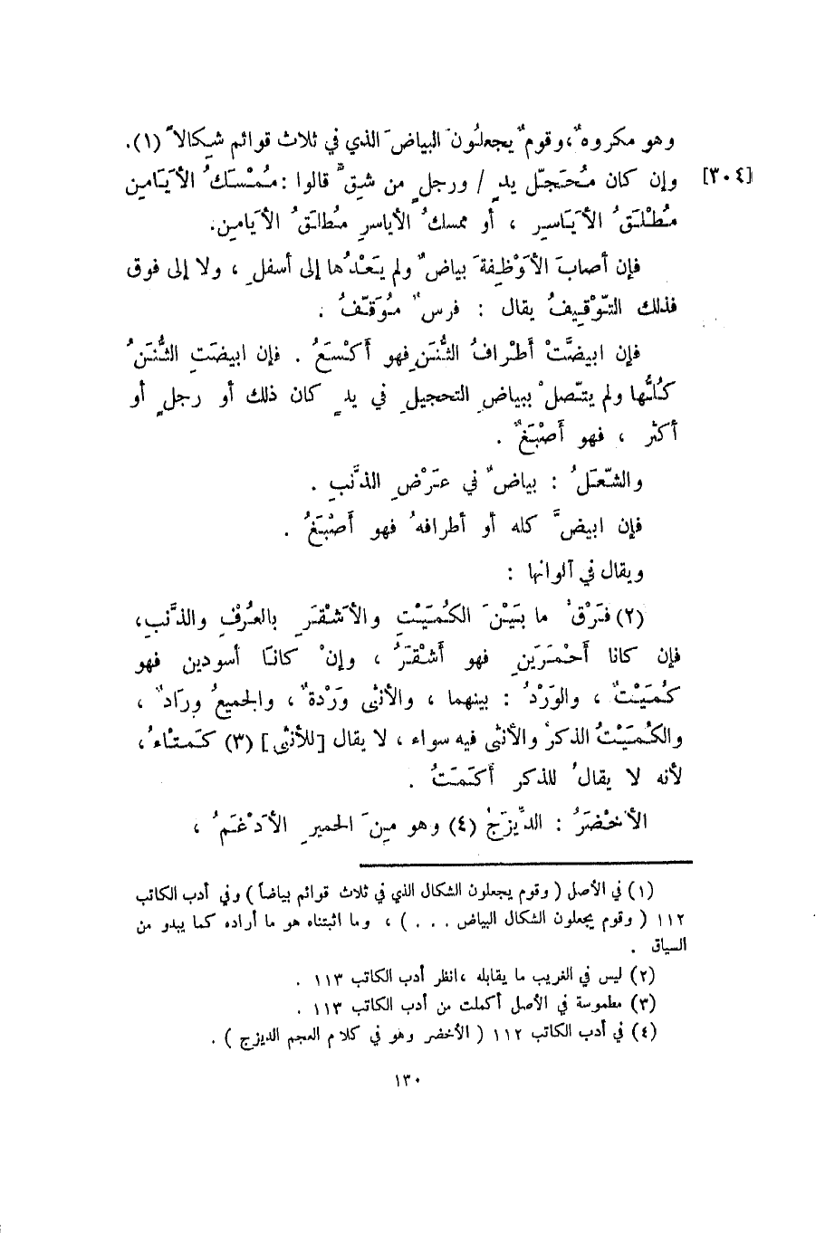 فإن ابيضت أطراف الثنن فهو أكسع. فإن ابيضت الثنن كلها ولم يتصل ببياض التحجيل في يد كان ذلك أو رجل أو أكثر، فهو أصبغ.