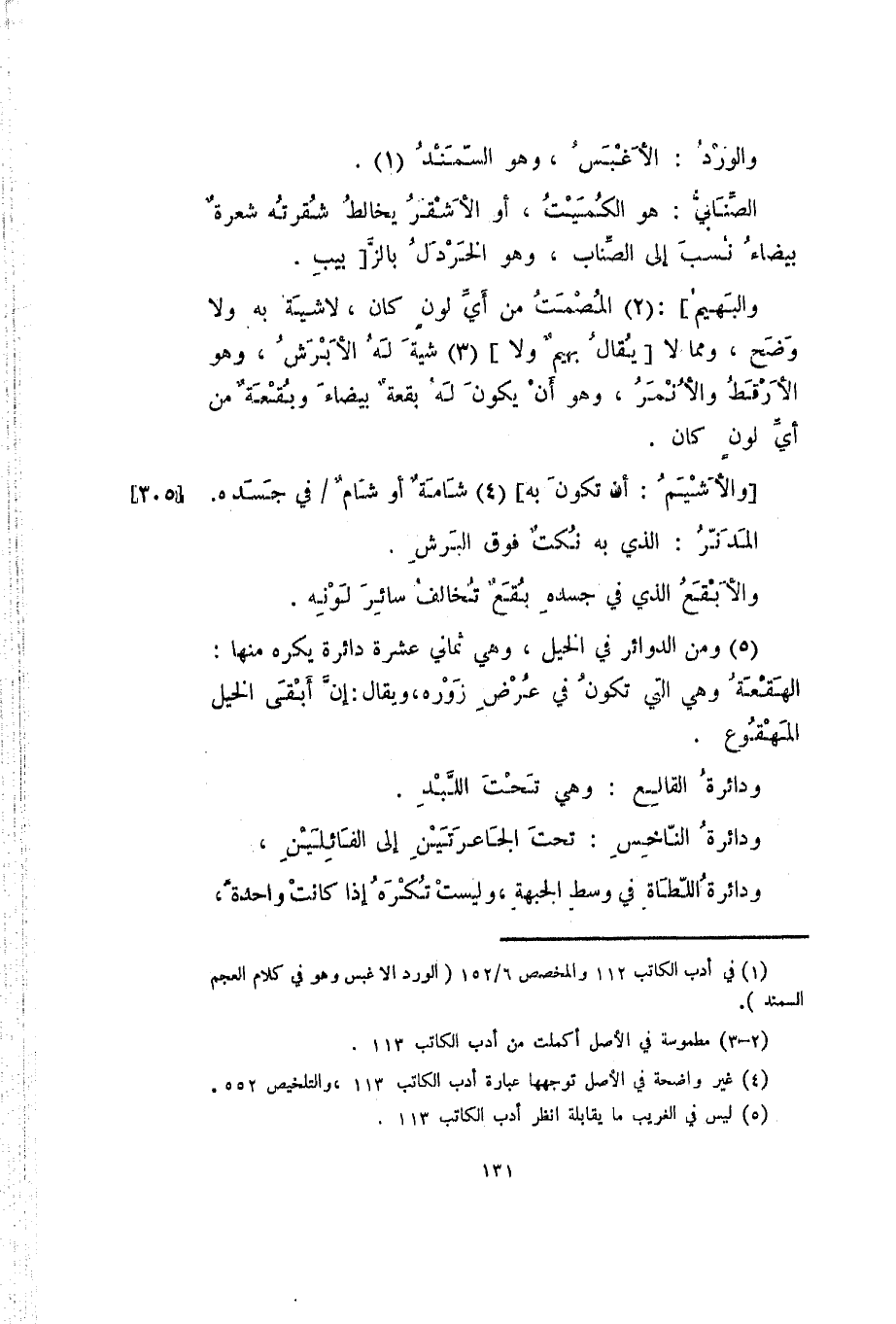 ومن الدوائر في الخيل، وهي ثماني عشرة دائرة يكره منها: الهقعة وهي التي تكون في عرض زوره، ويقال: إن أبقى الخيل المهقوع.