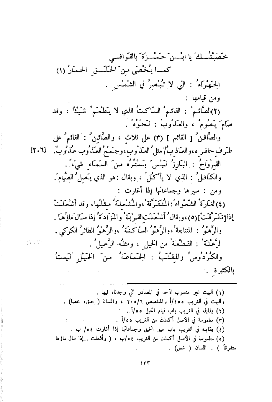 والصافن [القائم] على ثلاث، والصائن: القائم على طرف حافره، والعاذب مثل العذوب، وجمع العذوب عذوب.