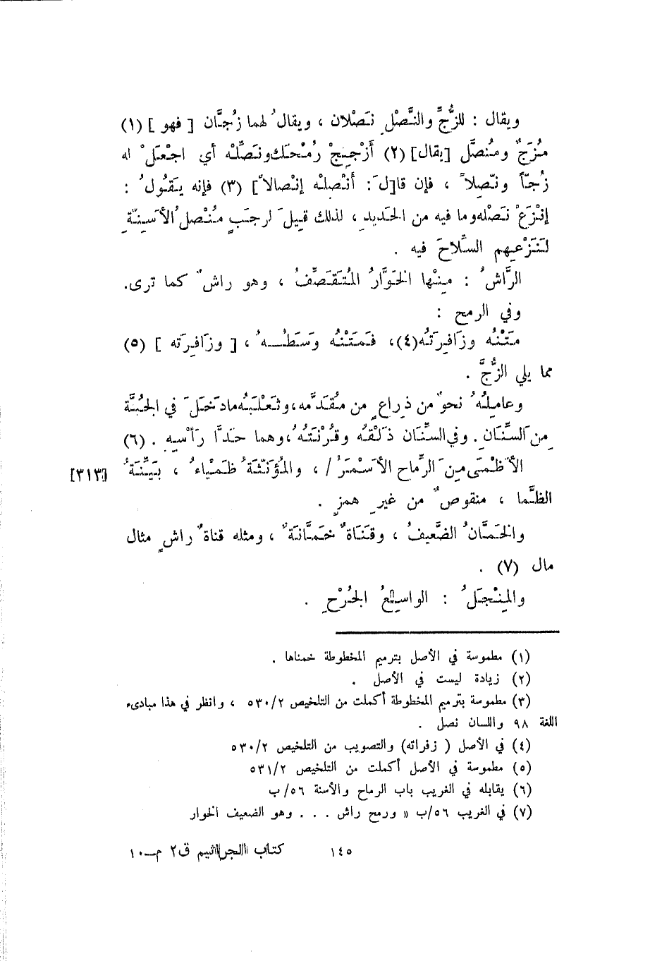 ويقال: للزج والنصل نصلان، ويقال لهما زجان [فهو] مزج ومنصل [يقال] أزجج رمحك ونصله أي اجعل له زجاً ونصلاً، فإن قا [ل: أنصله إنصالاً] فإنه يقول: انزع نصله وما فيه من الحديد، لذلك قيل لرجب منصل الأسنة لنزعهم السلاح فيه.