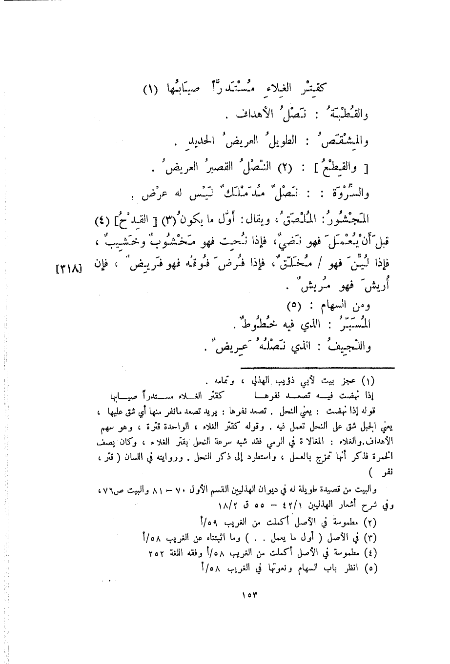 المجشور: الملصق، ويقال: أول ما يكون [القدح] قبل أن يعمل فهو نضي، فإذا نحت فهو مخشوب وخشيب، فإذا لين فهو مخلق، فإذا فرض فوقه فهو فريض، فإن أريش فهو مريش.