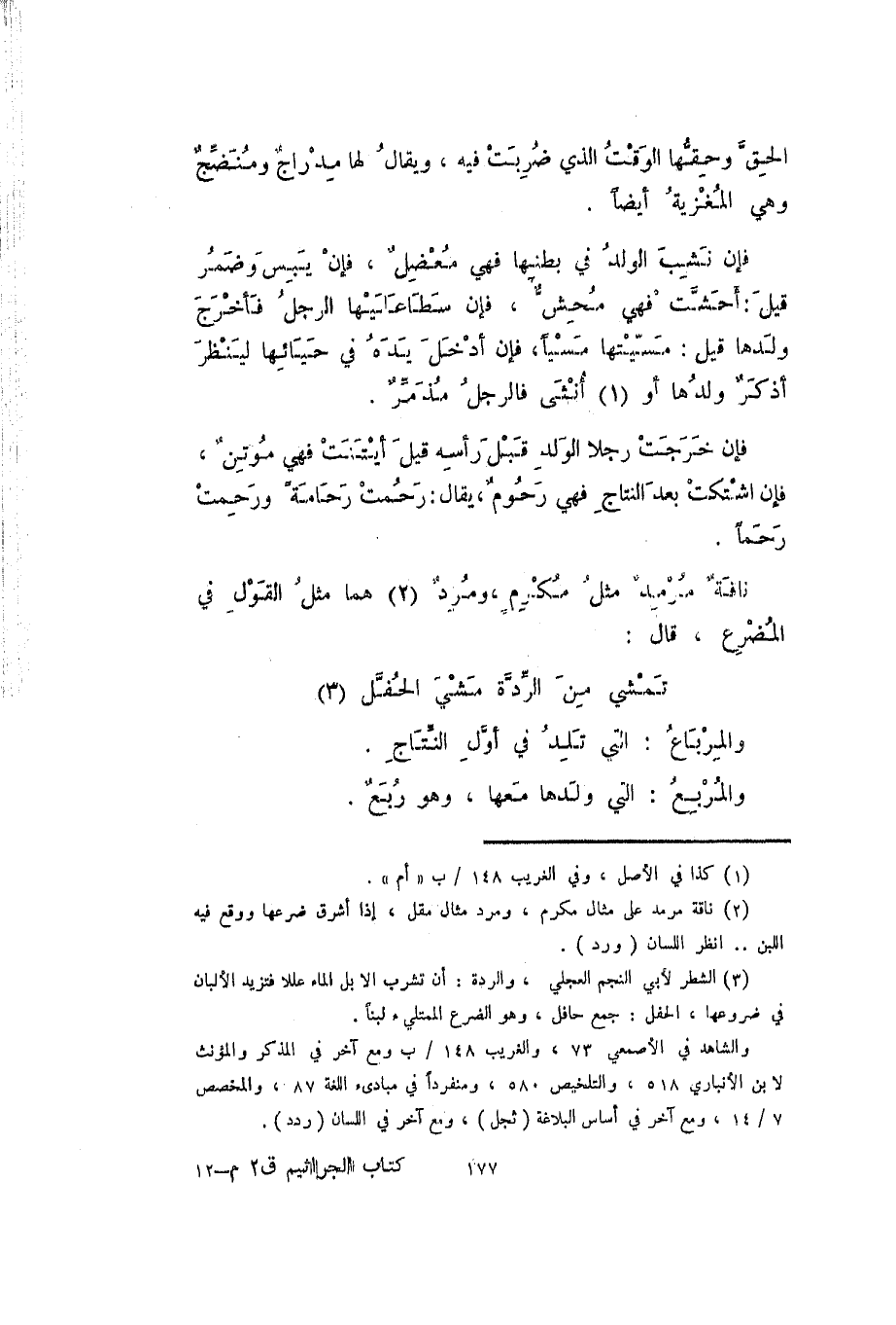 فإن خرجت رجلا الولد قبل رأسه قيل أيتنت فهي موتن فإن اشتكت بعد النتاج فهي رحوم، يقال: رحمت رحامة، ورحمت رحماً.