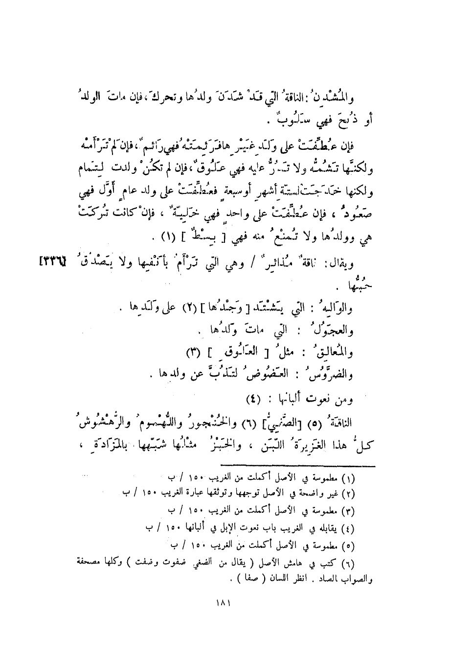 فإن عطفت على ولد غيرها فرئمته فهي رائم، فإن لم ترأمه ولكنها تشمه ولا تدر عليه فهي علوق، فأن لم تكن ولدت لتمام ولكنها خدجت لستة أشهر أو سبعة فعطفت على ولد عام أول فهي صعود، فإن عطفت على واحد فهي خلية، فإن كانت تركت هي وولدها ولا تمنع منه فهي [بسط] .