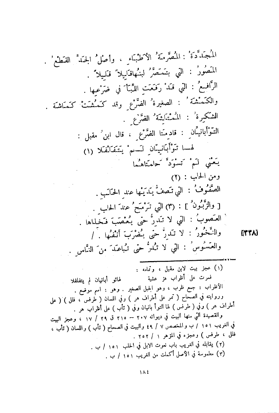 ومن الحلب: الصفوف: التي تصف يديها عند الحلب.