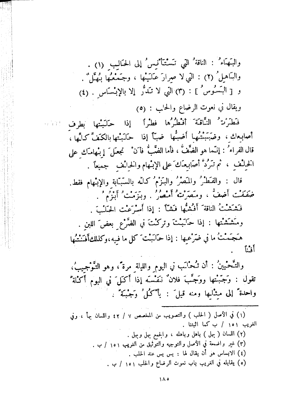 ويقال في نعوت الرضاع والحلب: فطرت الناقة أفطرها فطراً إذا حلبتها بطرف أصابعك، وضببتها أضبها ضباً إذا حلبتها بالكف كلها، قال الفراء: إنما هو الضف، فأما الضب فأن تجعل إبهامك على الخلف، ثم ترد أصابعك على الإبهام والخلف جميعاً.
