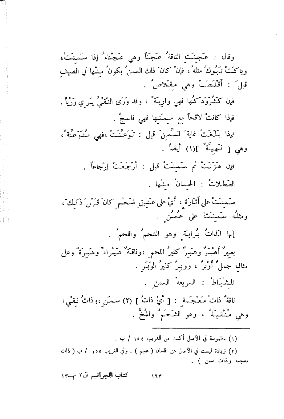 ناقة ذات معجمة: [أي ذات] سمن، وذات نقي، وهي منقية، وهو الشحم والمخ.