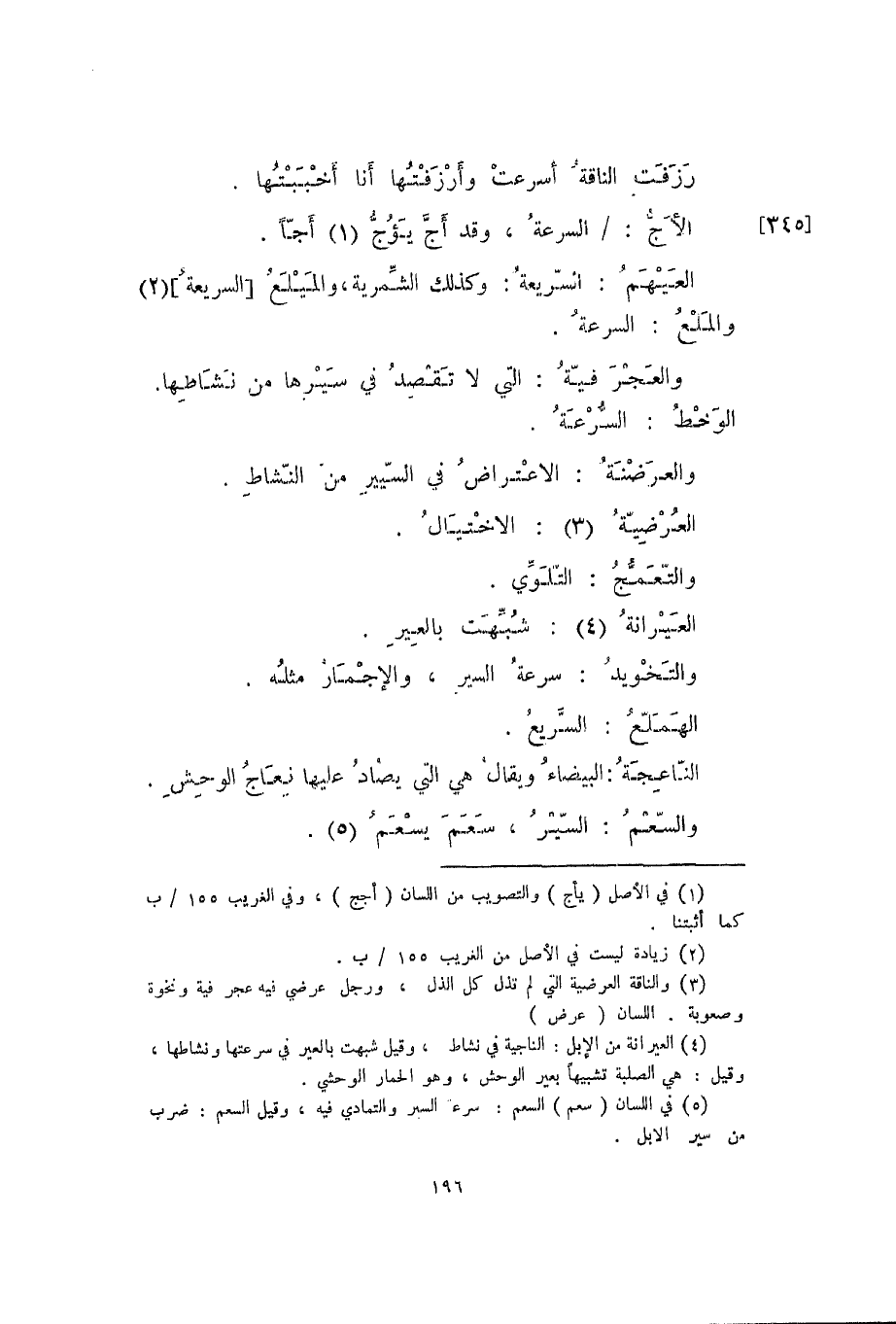 العيهم: السريعة: وكذلك الشمرية، والميلع [السريعة] والملع: السرعة.