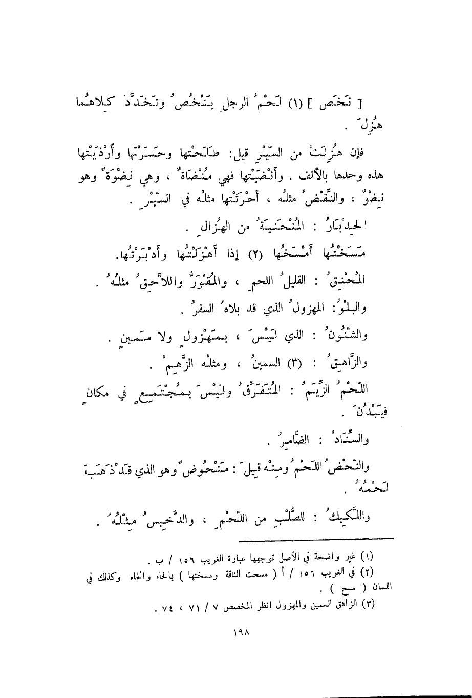 [نخص] لحم الرجل ينخص وتخدد كلاهما هزل.