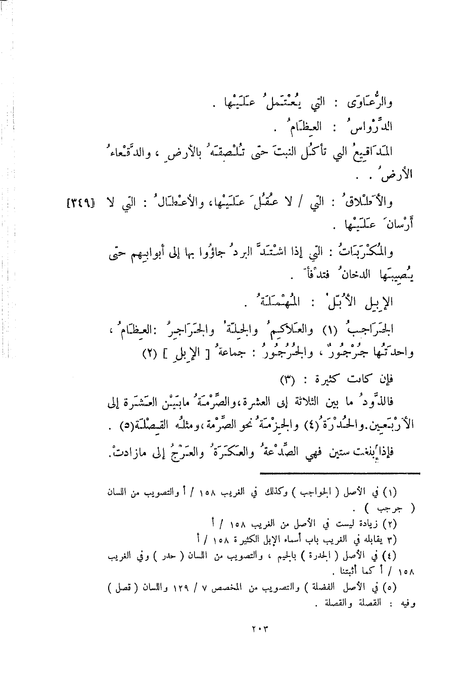 فإن كانت كثيرة: فالذود ما بين الثلاثة إلى العشرة، والصرمة ما بين العشرة إلى الربعين. والحدرة والجزمة نحو الصرمة، ومثله القصلة.
