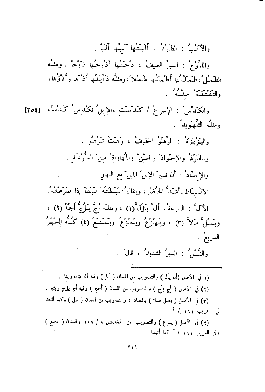 الأل: السرعة، أل يؤل، ومثله أج يؤج أجاً، ويمل ملاً، ويهزع ويمزع ويمصع كله السير السريع.