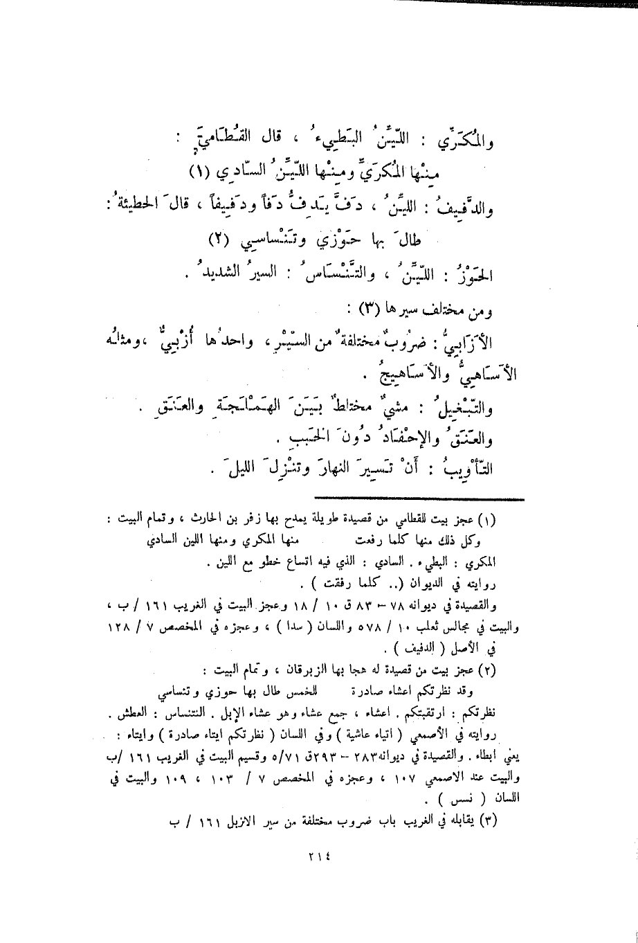 ومن مختلف سيرها: الأزابي: ضروب مختلفة من السير، واحدها أزبي، ومثله الأساهي والأساهيج.