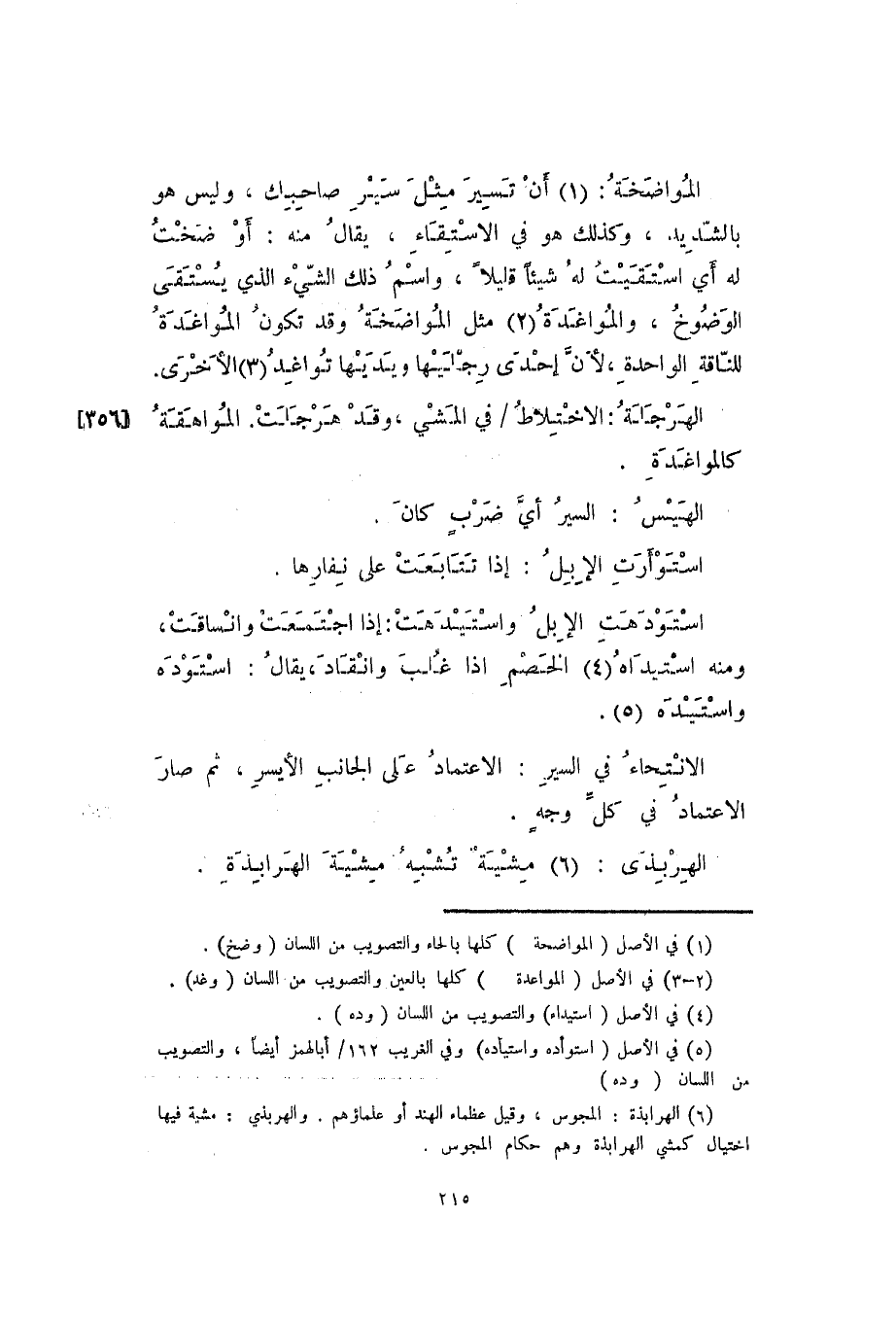 المواضخة: أن تسير مثل سير صاحبك، وليس هو بالشديد، وكذلك هو في الاستقاء، يقال منه: أوضخت له أي استقيت له شيئاً قليلاً، واسم ذلك الشيء الذي يستقى الوضوخ، والمواغدة مثل المواضخة وقد تكون المواغدة للناقة الواحدة، لأن إحدى رجليها ويديها تواغد الأخرى.