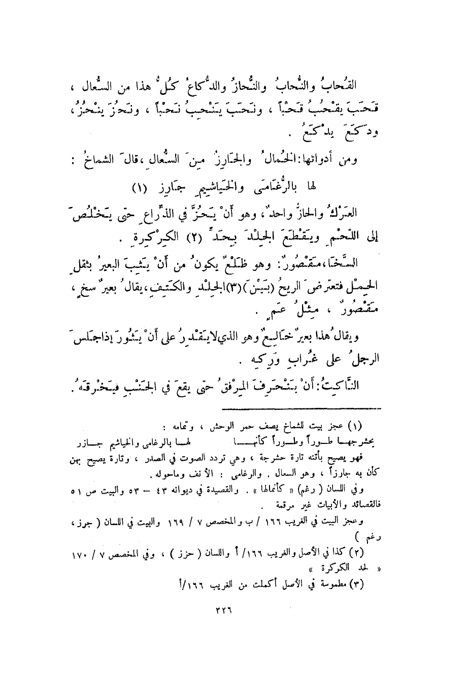 ومن أدوائها: الخمال والجارز من السعال، قال الشماخ: