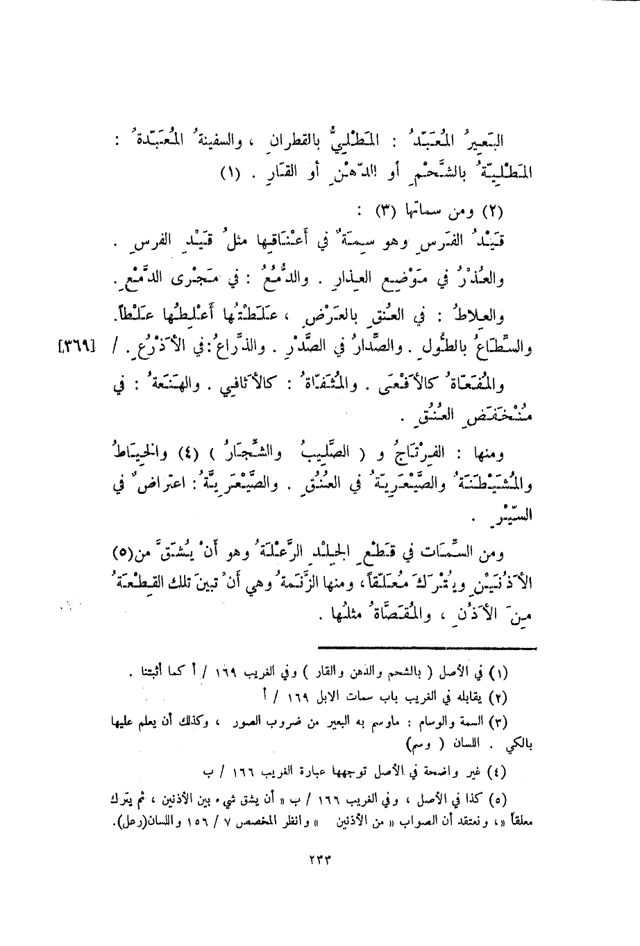 والعذر في موضع العذار. والدمع: في مجرى الدمع. والعلاط: في العنق بالعرض، علطتها أعلطها علطاً والسطاع بالطول. والصدار في الصدر. الذراع في الأذرع.