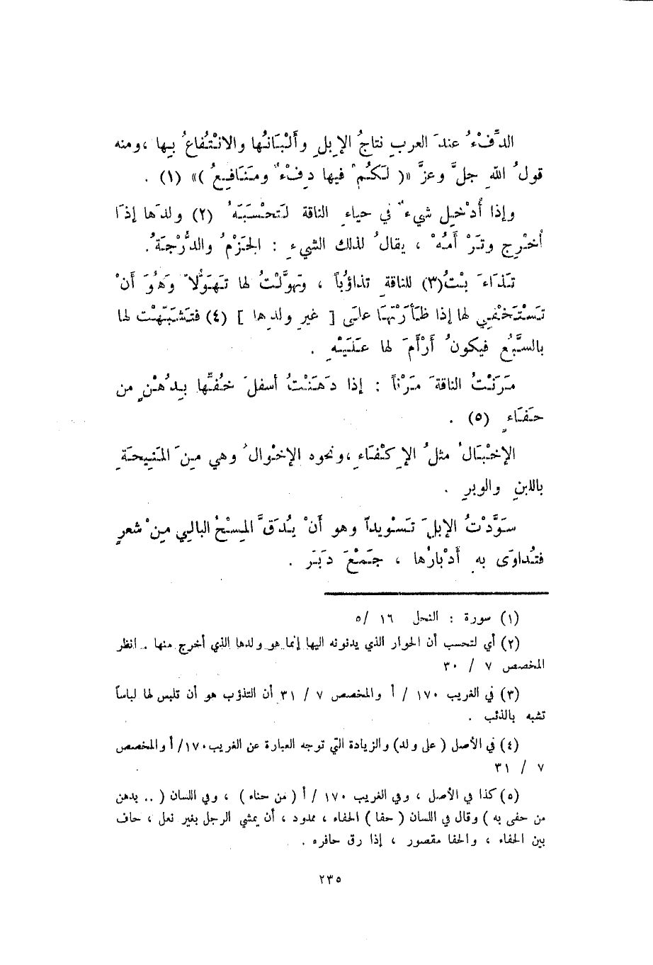 الدفء عند العرب نتاج الإبل وألبانها والانتفاع بها، ومنه قول الله جل وعز {لكم فيها دفء ومنافع.
