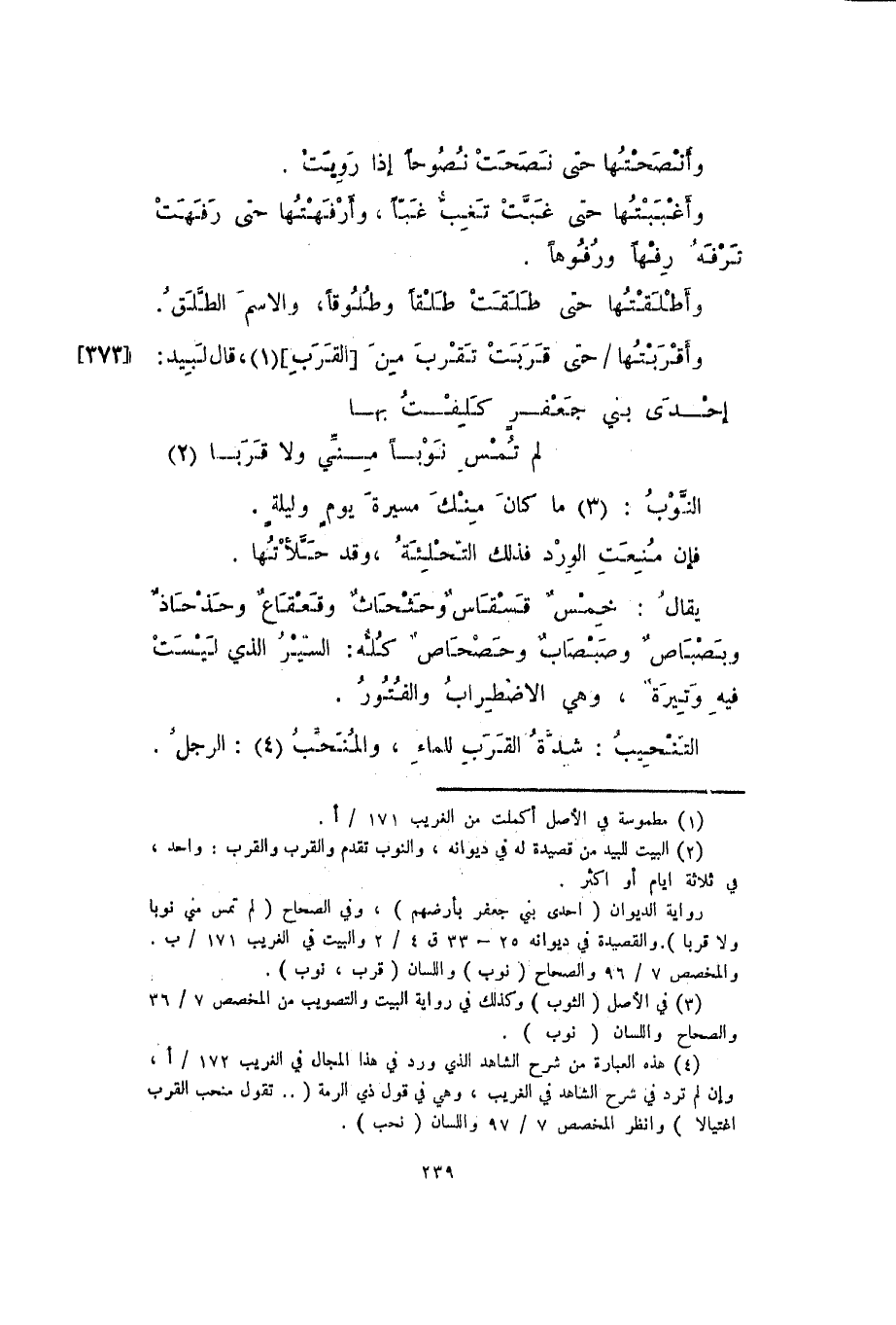 وأقربتها حتى قربت تقرب من [القرب] ، قال لبيد: