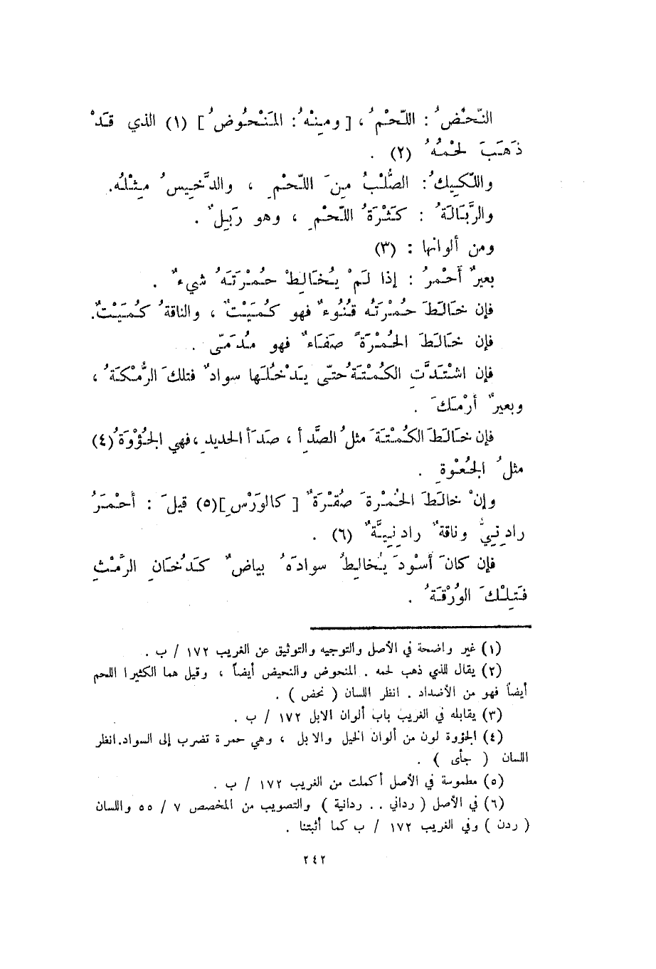 وإن خالط الحمرة صفرة [كالورس] قيل: أحمر رادني ونادقة رادنية.