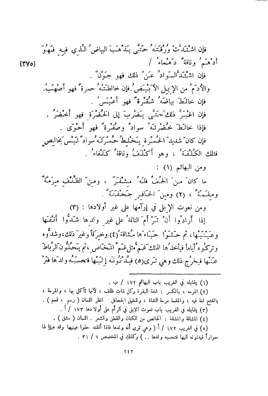 فإن اشتدت ورقته حتى يذهب البياض الذي فيه فهو أدهم وناقة دهماء.