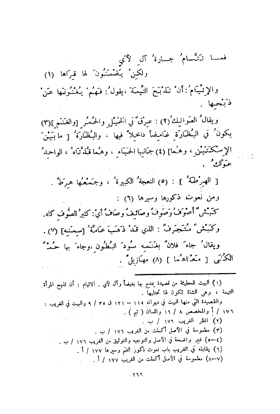 ومن نعوت ذكورها وسيرها: كبش أصوف وصوف وصائف وصاف أي: كثير الصوف كله.