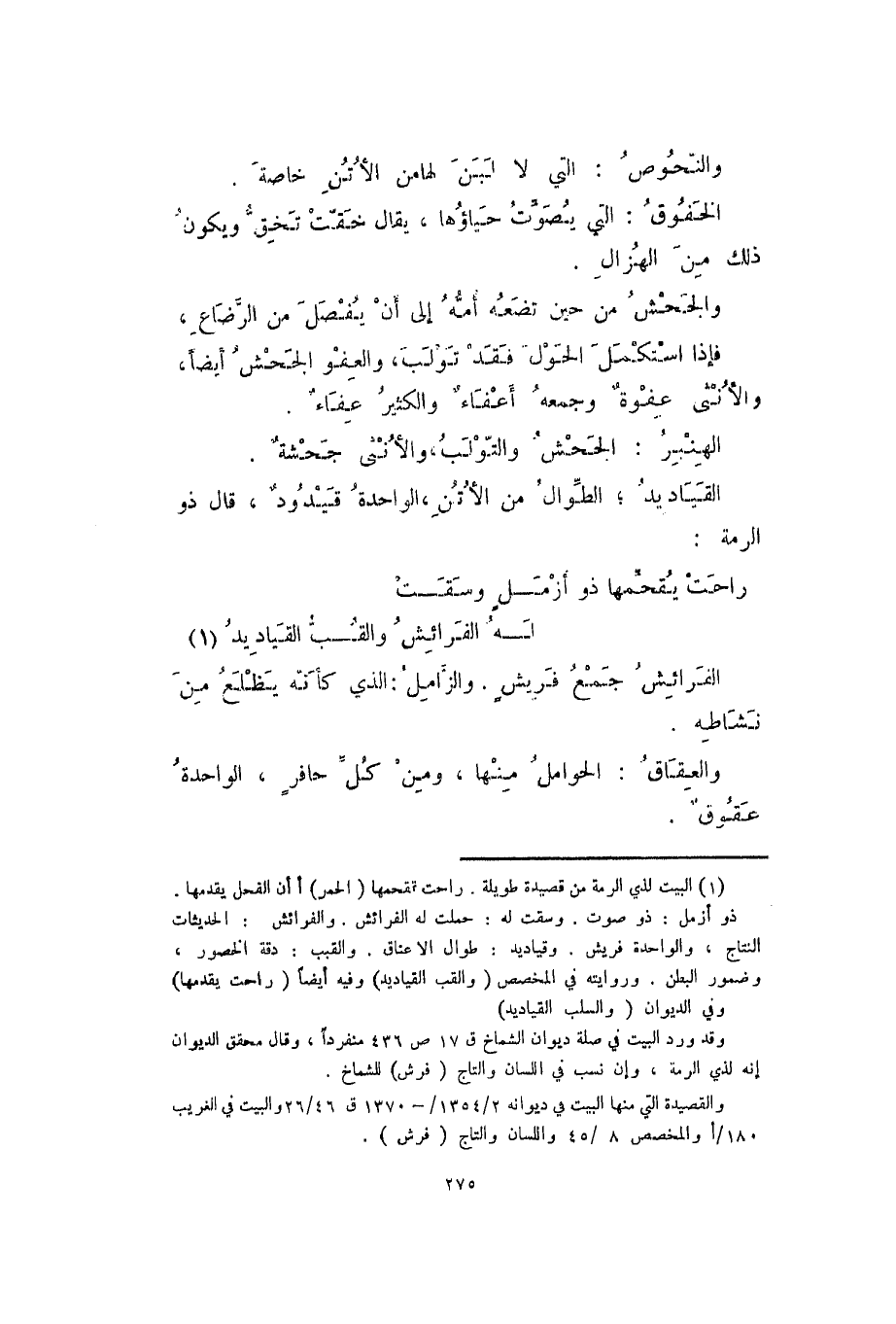 راحت يقحِّمها ذو أرملٍ وسقتْ ... له الفرابشُ والقبُّ القياديد