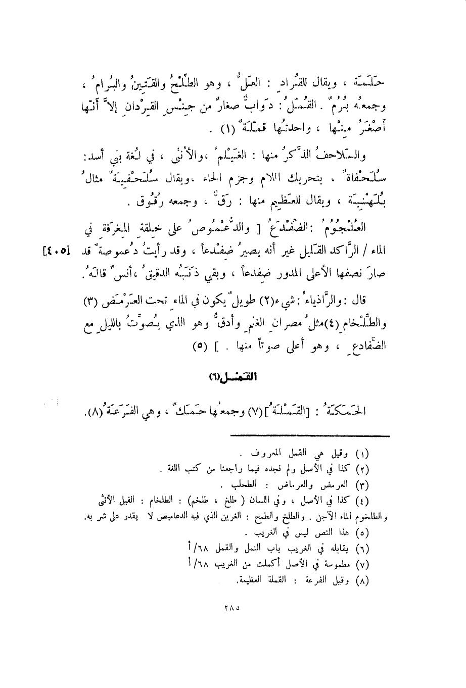 العلجوم: الضفدع [والدعموص على خلقة المغرفة قفي الماء الراكد القليل غير أنه يصير ضفدعاً، وقد رأيت دعموصة قد صار نصفها الأعلى المدور ضفدعاً، وبقي ذنبه الدقيق، أنس قاله.