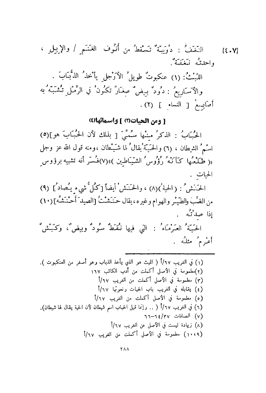 الحباب: الذكر منها سمي [بذلك لأن الحباب هو] اسم الشيطان، والحية يقال لها شيطان، ومنه قول الله عز وجل {طلعها كأنه رؤوس الشياطين} فسر أنه تشبيه برؤوس الحيات.