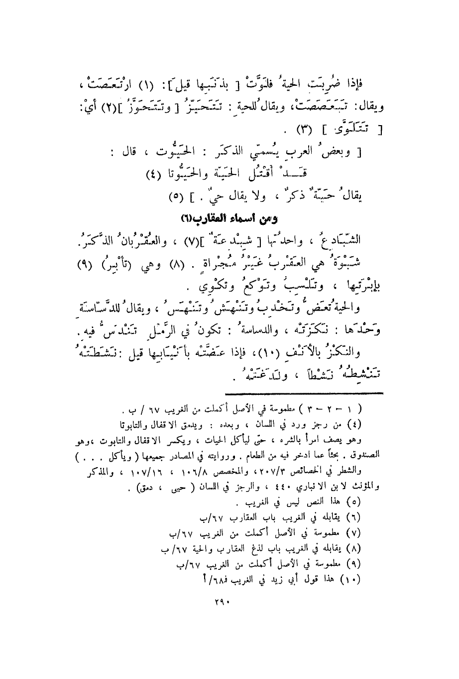 الحية. فإذا ضربت الحية فلوت [بذنبها قيل] : ارتعصت، ويقال: تبعصصت، ويقال للحية: تتحيز [وتتحوز] أي: [تتلوى] .