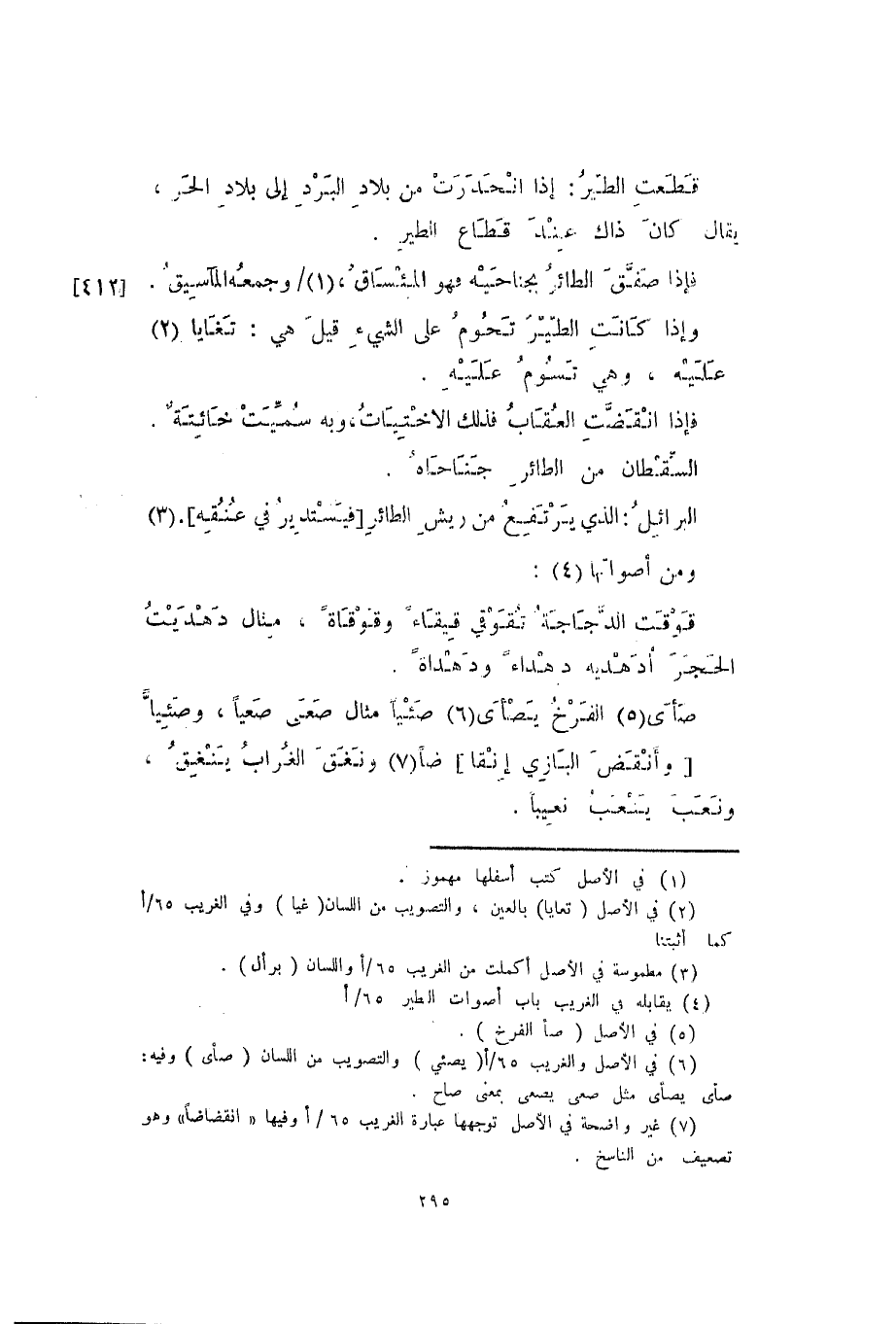 صأى القرخ يصأى ضئياً مثال صعى صعياً وصئياً [وأنقض البازي إنقا] ضاً، ونغق الغراب ينغق، ونعب ينعب نعيباً.