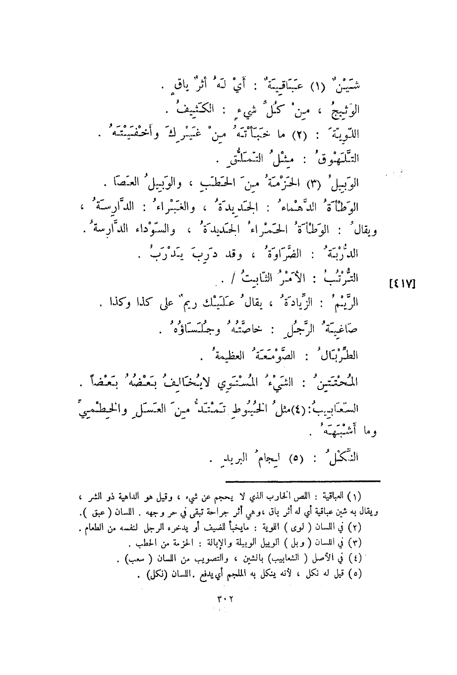 شين عباقية: أي له أثر باق الوثيج، من كل شيء: الكثيف.