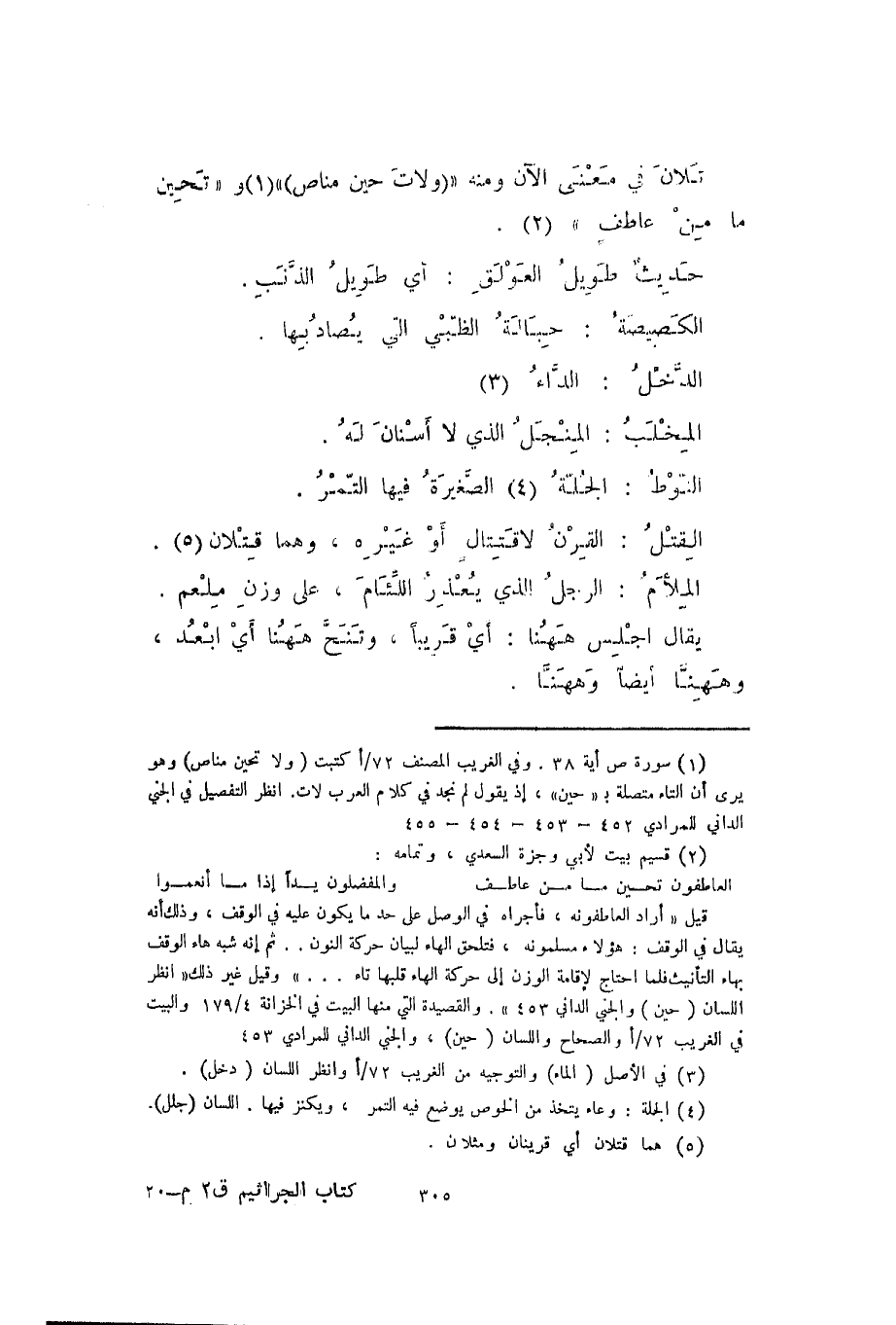 تلان في معنى الآن ومنه {ولات حين مناص} و"تحيمن ما من عاطف" حديث طويل العولق: أي طويل الذنب.