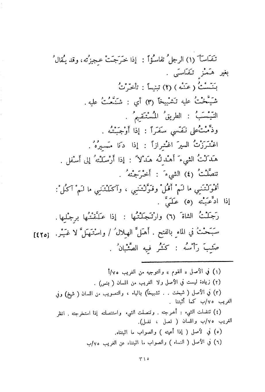 تفاسأ الرجل تفاسؤاً: إذات خرجت عجيزته، وقد يقال بغيز همز تفاسى.