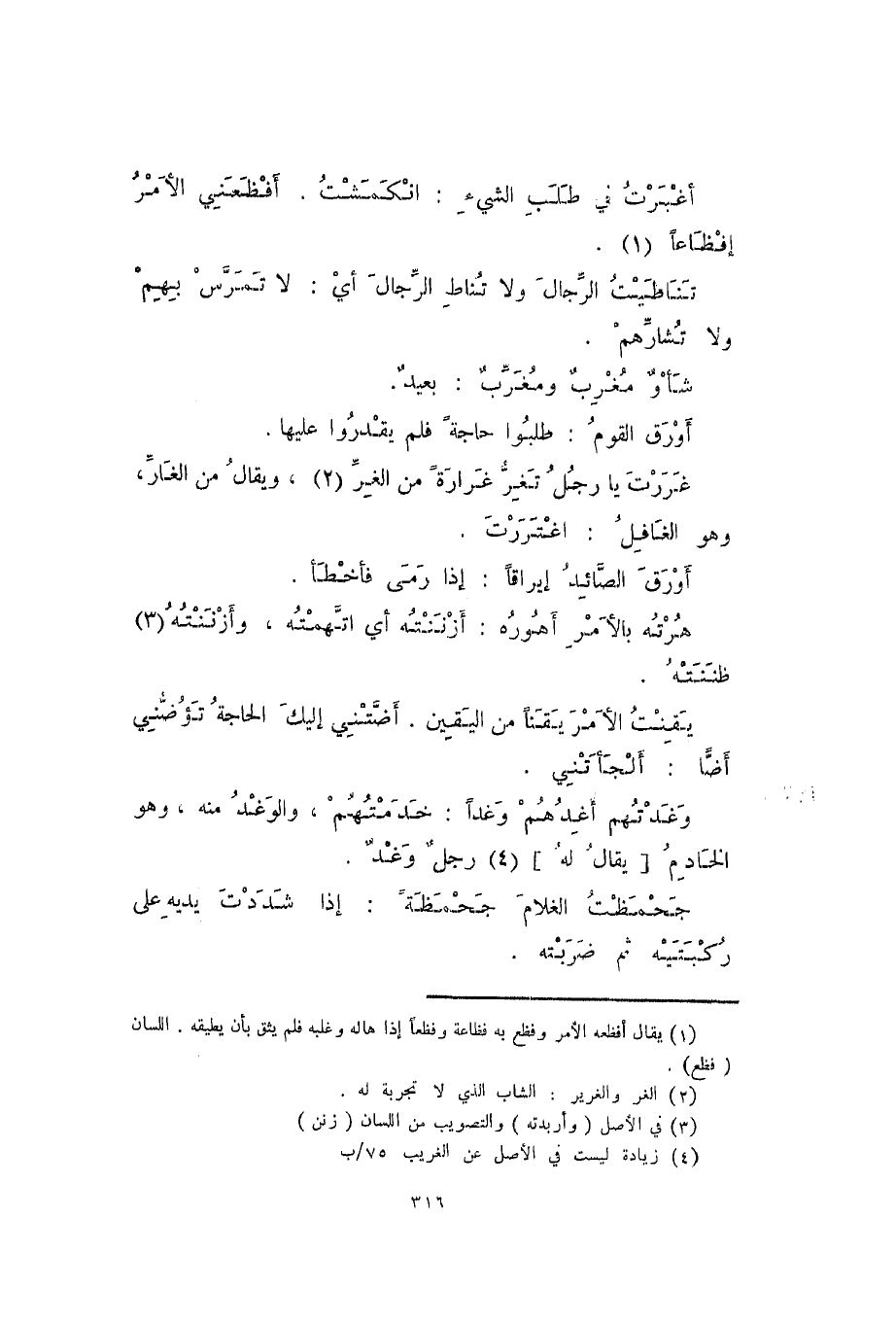أغبرت في طلب الشيء: انكمشت، أفظعني الأمر إفظاعاً.