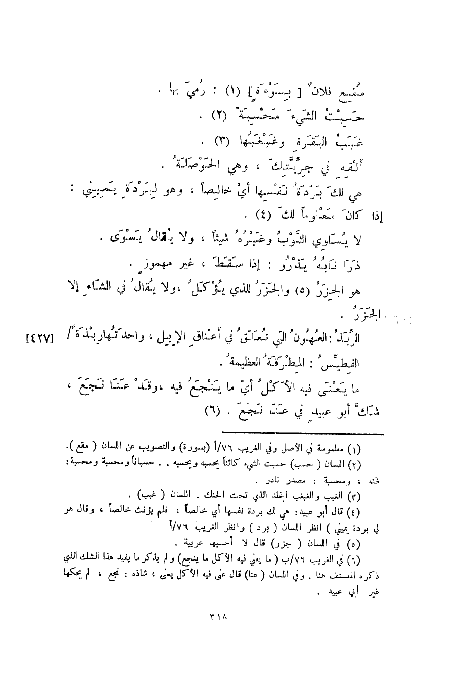 حسبت الشيء محسبة غبب البقرة وغبغبها.