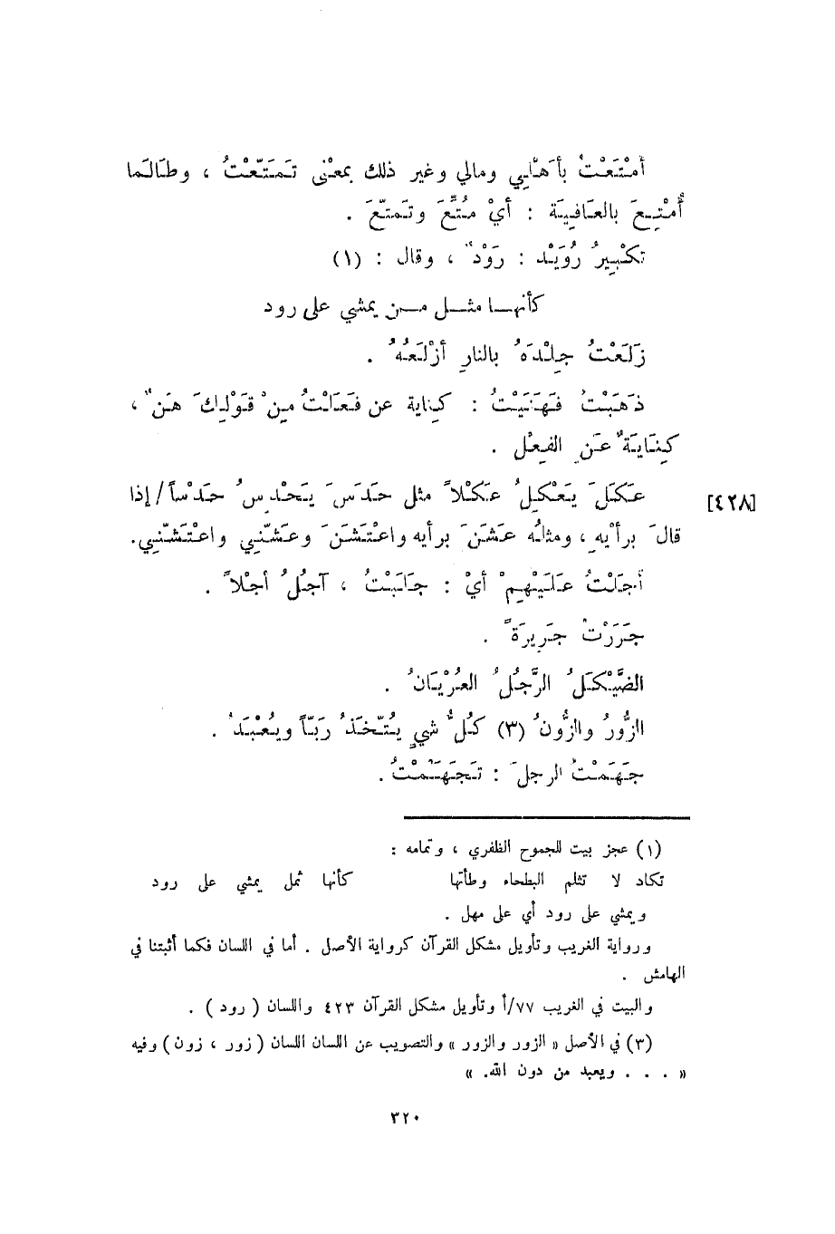 ذهبت فهنيت: كناية عن فعلت من قولك هن، كناية عن الفعل.