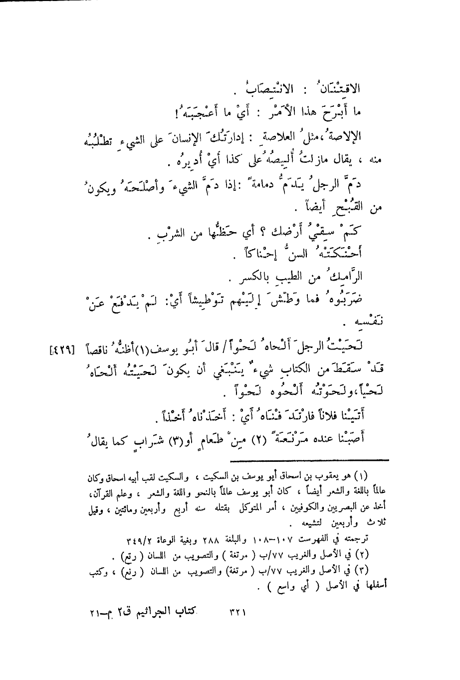 لحيت الرجل ألحاه لحواً: قال أبو يوسف أظنه ناقصاً قد سقط من الكتاب شيء يسنبغي أن يكون لحيته ألحاع لحياً، ولحوته ألحوه لحواً.