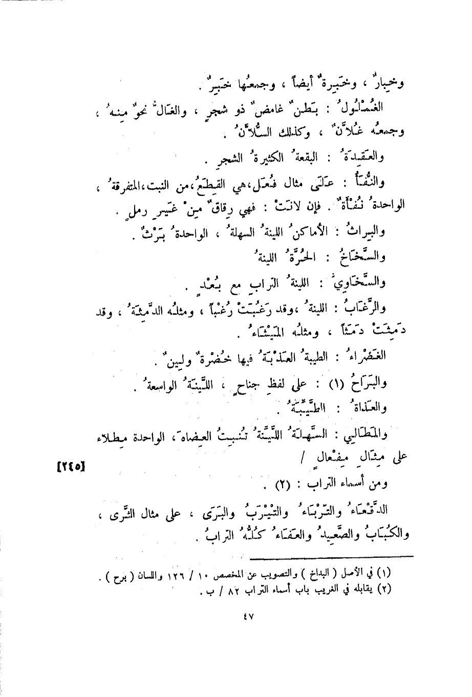 والبراث: الأماكن اللينة السهلة، الواحدة برث.
