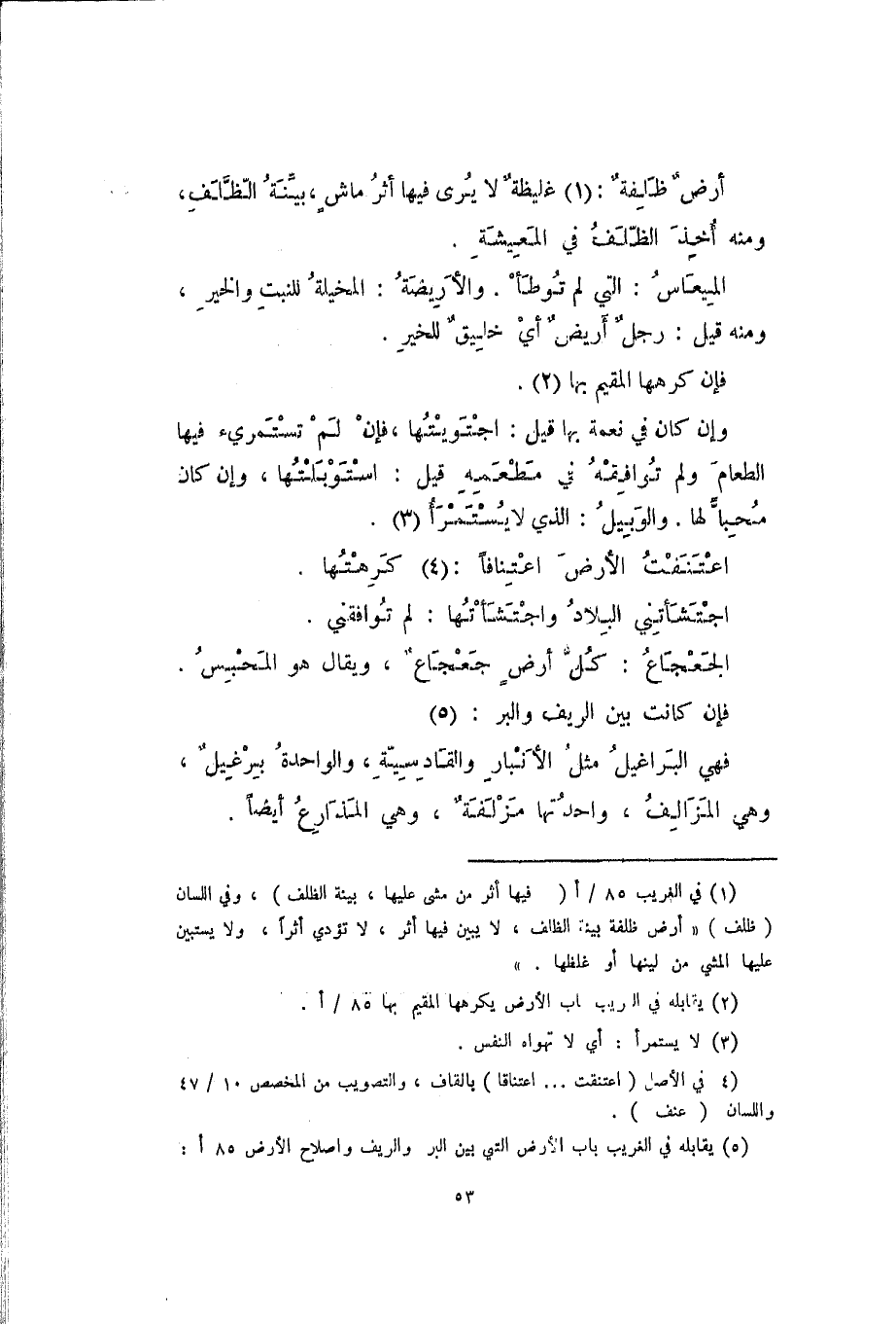 فإن كانت بين الريف والبر: فهي البراغيل مثل الأنبار والقادسية، والواحدة برغيل، وهي المزلف، واحدتها مزلفة، وهي المذارع أيضاً.