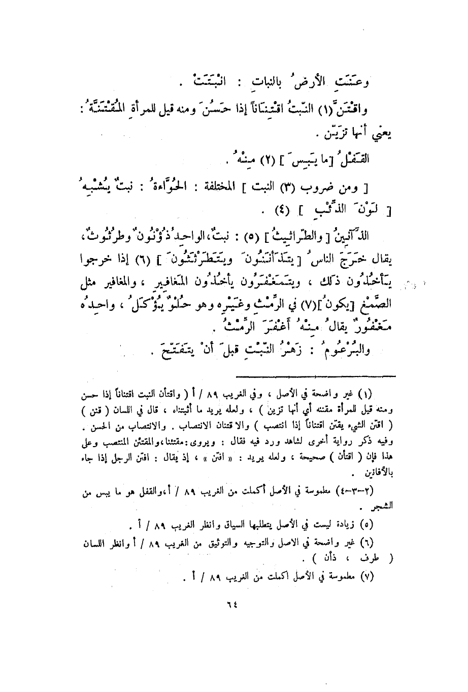 واقتن النبت اقتناناً إذا حسن ومنه قيل للمرأة المقتنة: يعني أنها تزين.