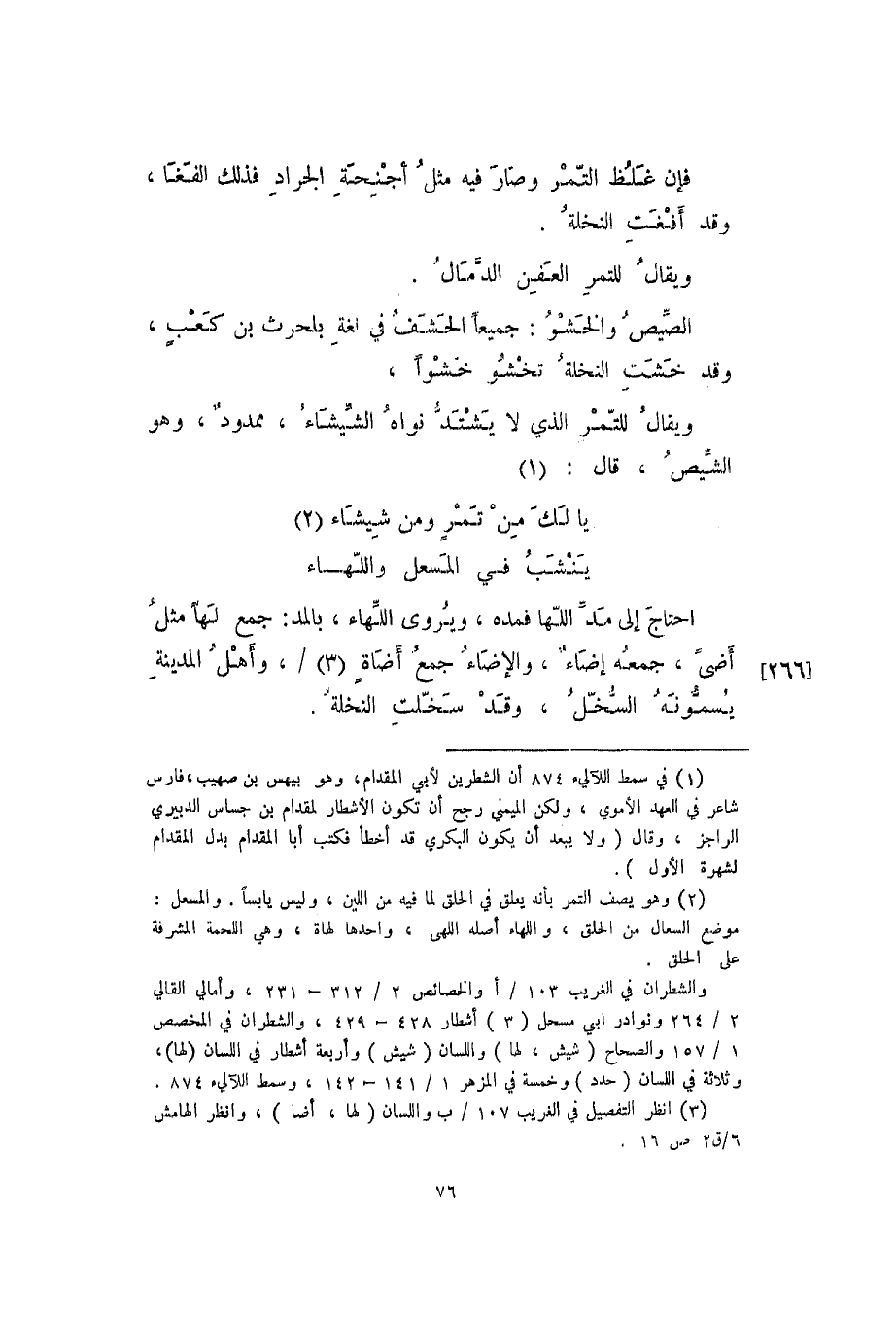 ويقال للتمر الذي لا يشتد نواه الشيشاء، ممدود، وهو الشيص، قال: