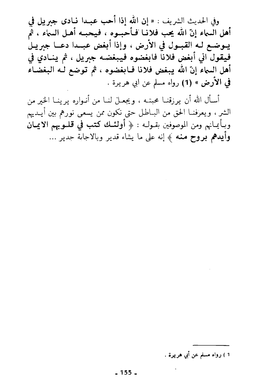 أسأل الله أن يرزقنا محبته، ويجعل لنا من أنواره يرينا الخير من الشر، ويعرفنا الحق من الباطل حتى نكون ممن يسعى نورهم بين أيديهم وبأيمانهم ومن الموصوفين بقوله: {أُولَئِكَ كَتَبَ فِي قُلُوبِهِمُ الْإِيمَانَ وَأَيَّدَهُمْ بِرُوحٍ مِنْهُ} إنه على ما يشاء قدير وبالإجابة جدير ...