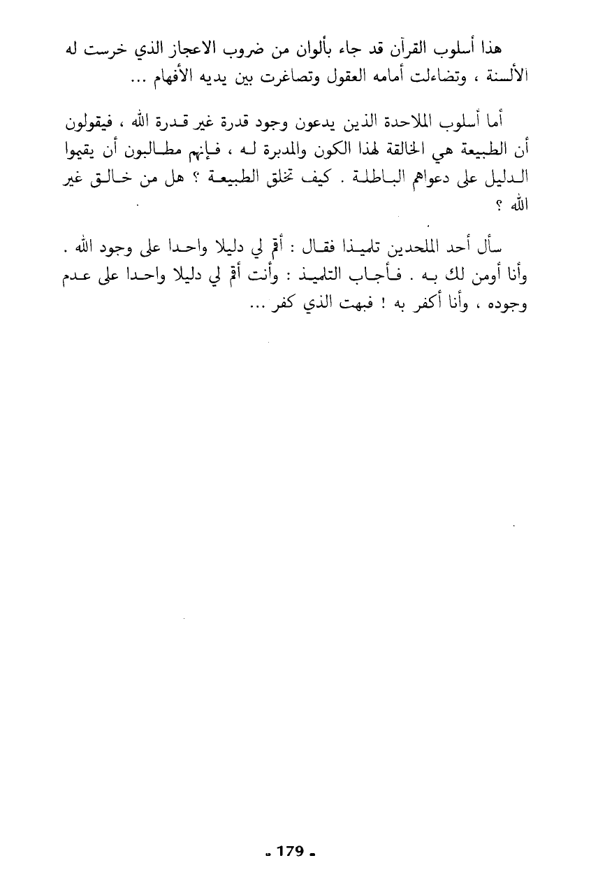 سأل أحد الملحدين تلميذا فقال: أقم لي دليلا واحدا على وجود الله. وأنا أومن لك به. فأجاب التلميذ: وأنت أقم لي دليلا واحدا على عدم وجوده، وأنا أكفر به؟ فبهت الذي كفر ...