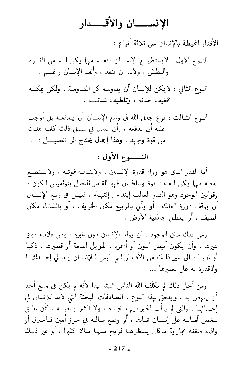 الأقدار المحيطة بالإنسان على ثلاثة أنواع: