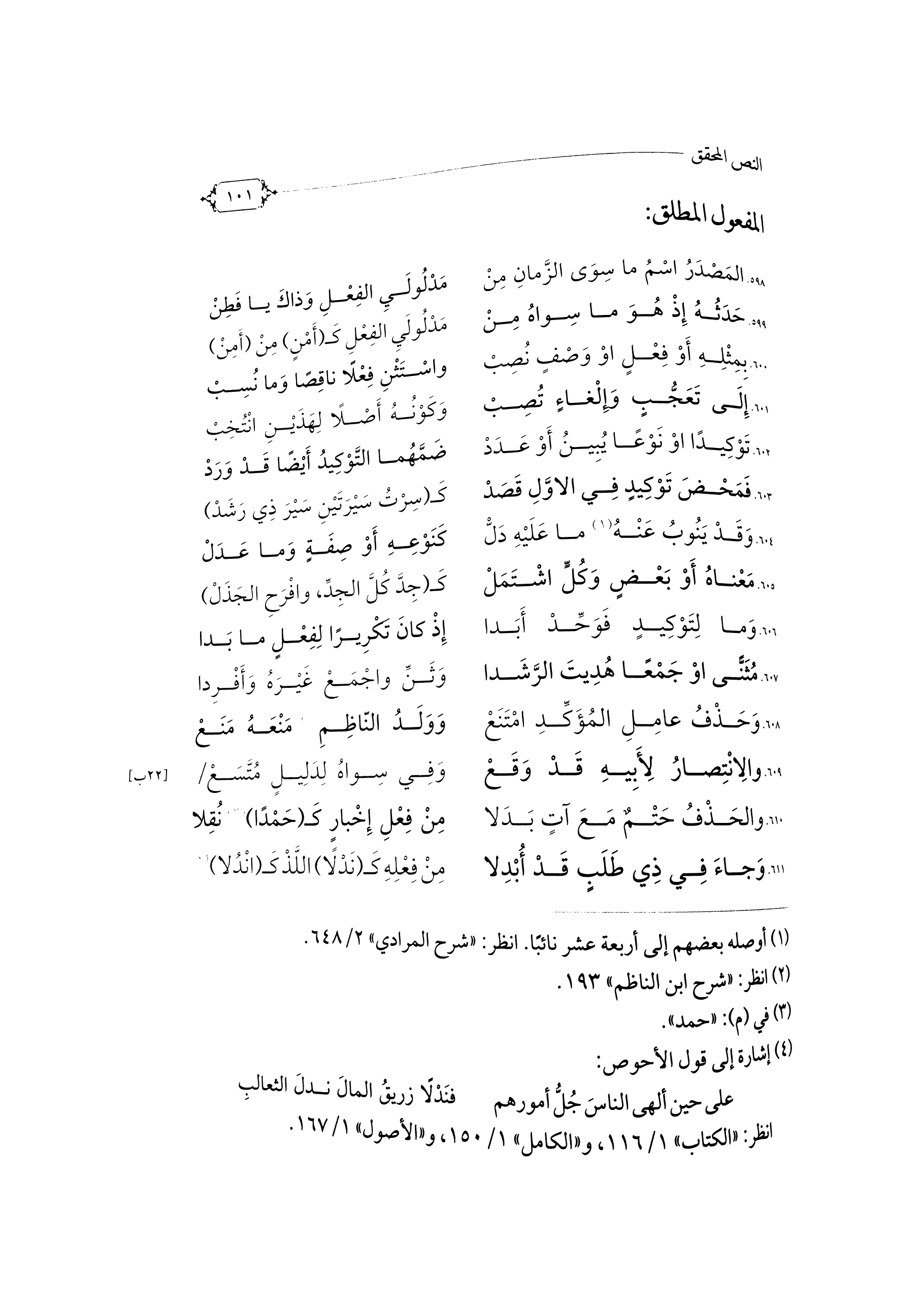 ٥٩٨. المَصْدَرُ اسْمُ مَا سِوَى الزَّمَانِ مِنْ ... مَدْلُولَيِ الفِعْلِ وَذَاكَ يَا فَطِنْ ...