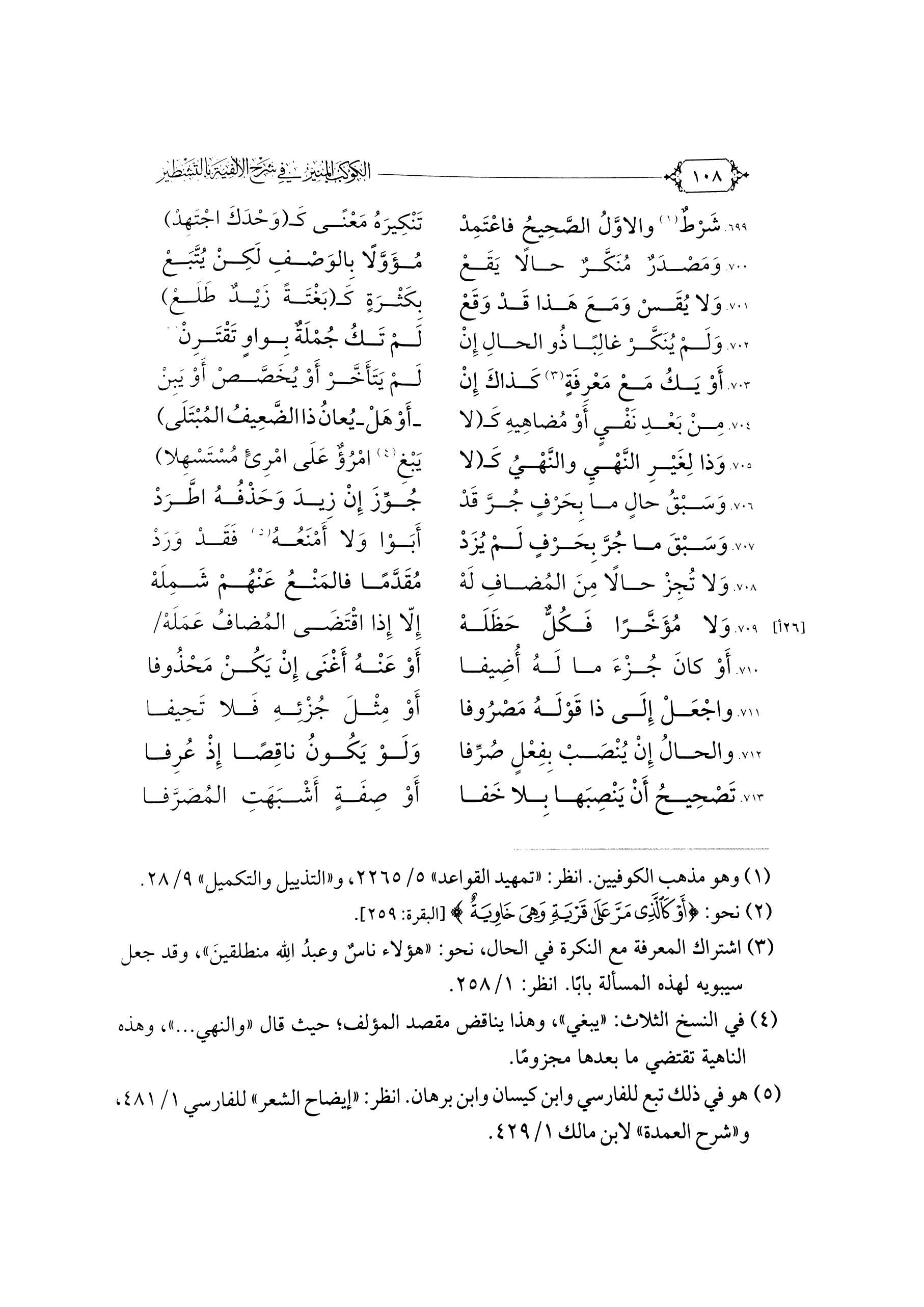 ٧٠٣. أَوْ يَكُ مَعْ مَعْرِفَةٍ (¬٣) كَذَاكَ إِنْ ... لَمْ يَتَأَخَّرْ أَوْ يُخَصَّصْ أَوْ يَبِنْ ...