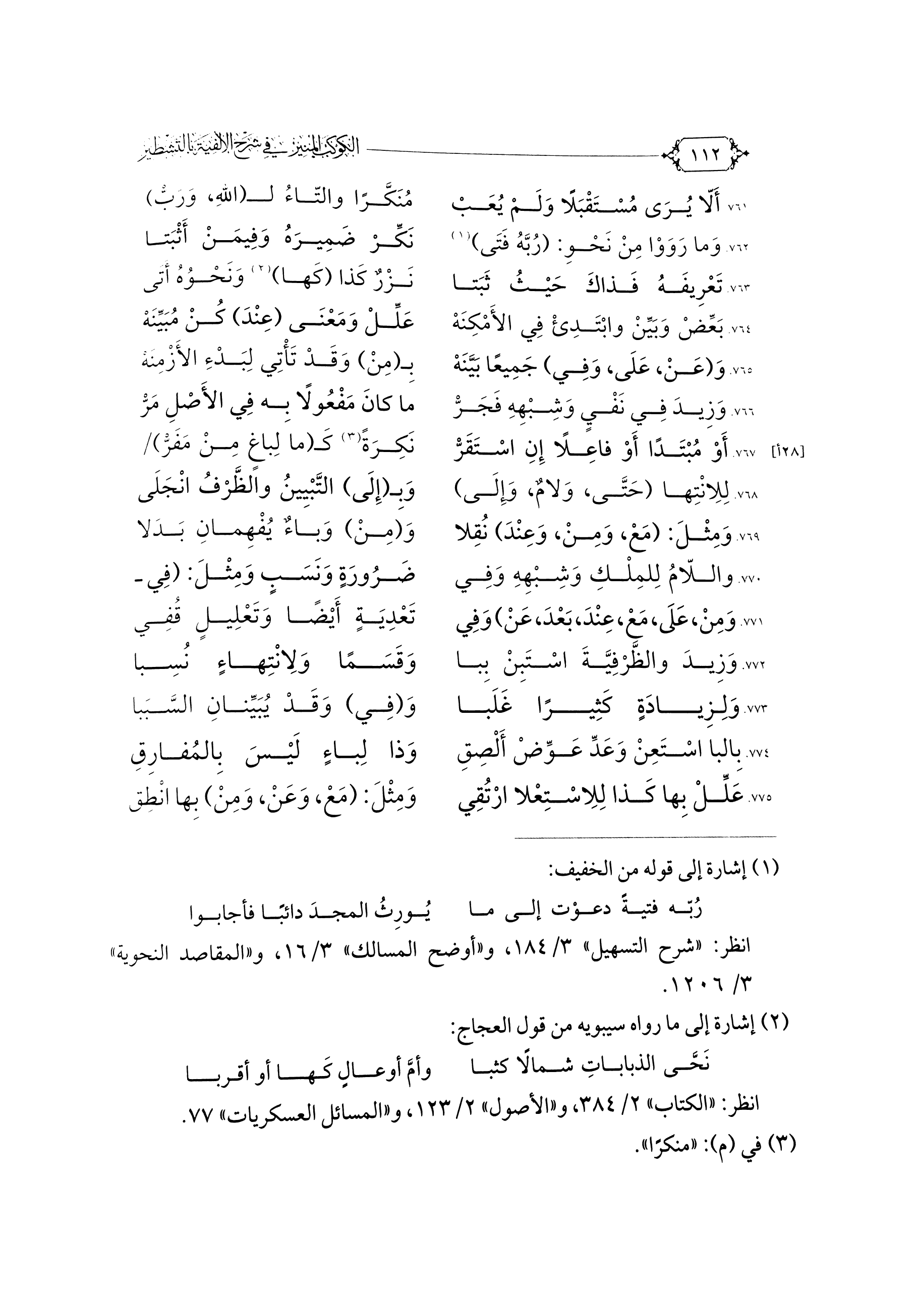 ٧٦٣. تَعْرِيفَهُ فَذَاكَ حَيْثُ ثَبَتَا ... نَزْرٌ كَذَا (كَهَا) (¬٢) وَنَحْوُهُ أَتَى ...