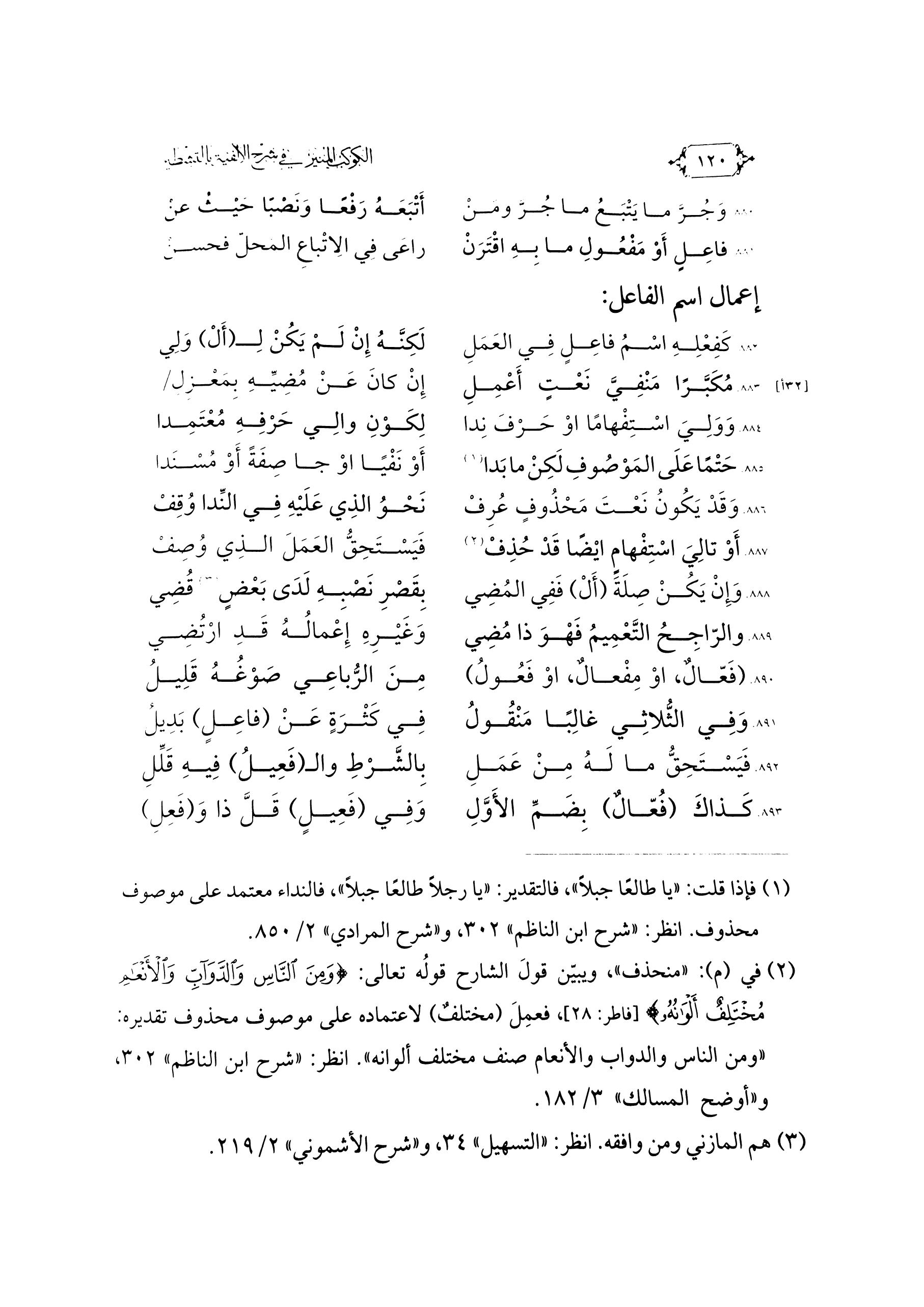 (¬١) فإذا قلت: "يا طالعًا جبلًا" فالتقدير: "يا رجلًا طالعًا جبلًا"، فالنداء معتمد على موصوف محذوف. انظر: شرح ابن الناظم ٣٠٢ وشرح المرادي ٢\ ٨٥٠.