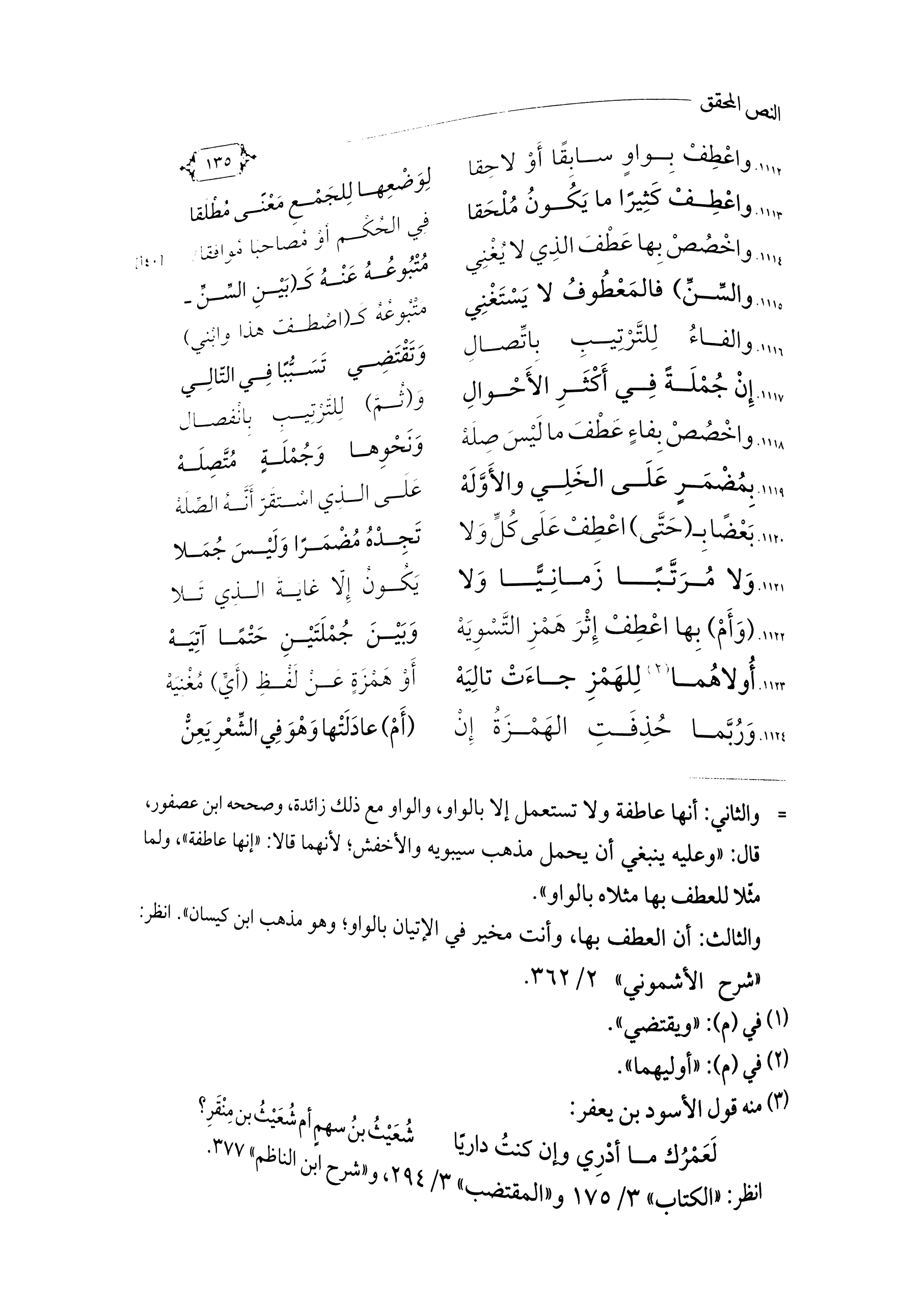 \٤٠ أ\ ... فِي الحُكْمِ أَوْ مُصَاحِبًا مُوَافِقَا ... ١١١٣. وَاعْطِفْ كَثِيرًا مَا يَكُونُ مُلْحَقَا ...