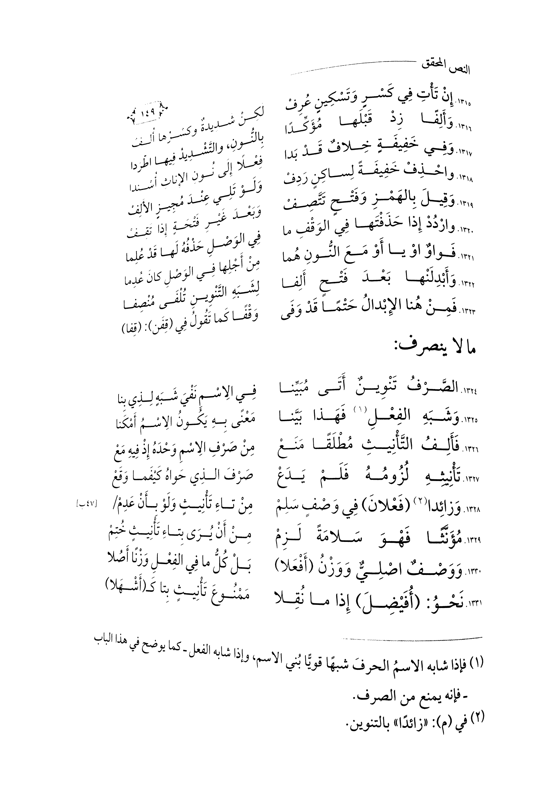 ١٣٢٤. الصَّرْفُ تَنْوِينٌ أَتَى مُبَيِّنَا ... فِي الِاسْمِ نَفْيَ شَبَهٍ لِذِي بِنَا ...