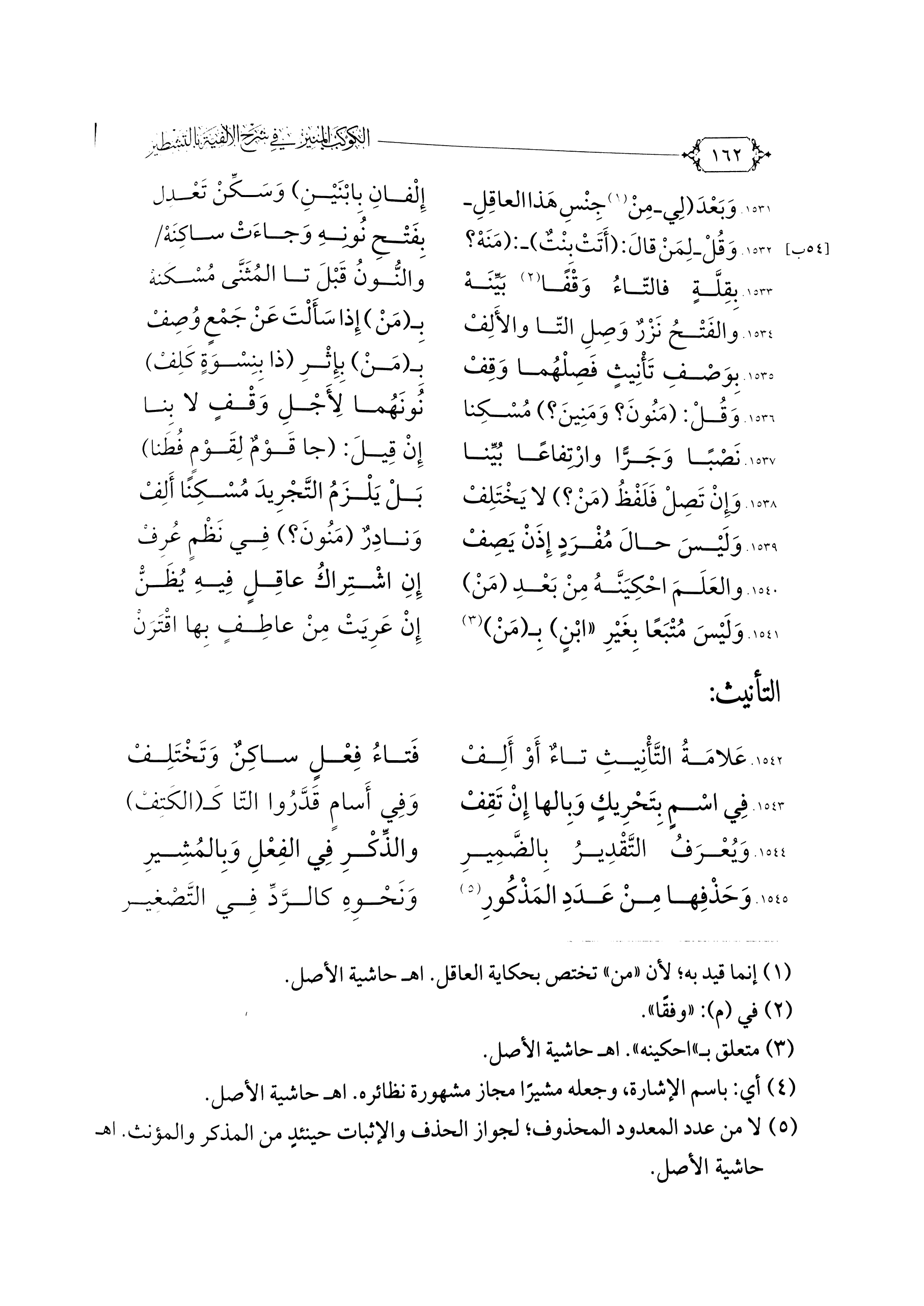 \٥٤ ب\ ... بِفَتْحِ نُونِهِ وَجَاءَتْ سَاكِنَهْ ... ١٥٣٢. وَقُلْ -لِمَنْ قَالَ: (أَتَتْ بِنْتٌ) -: (مَنَهْ؟ ) ...