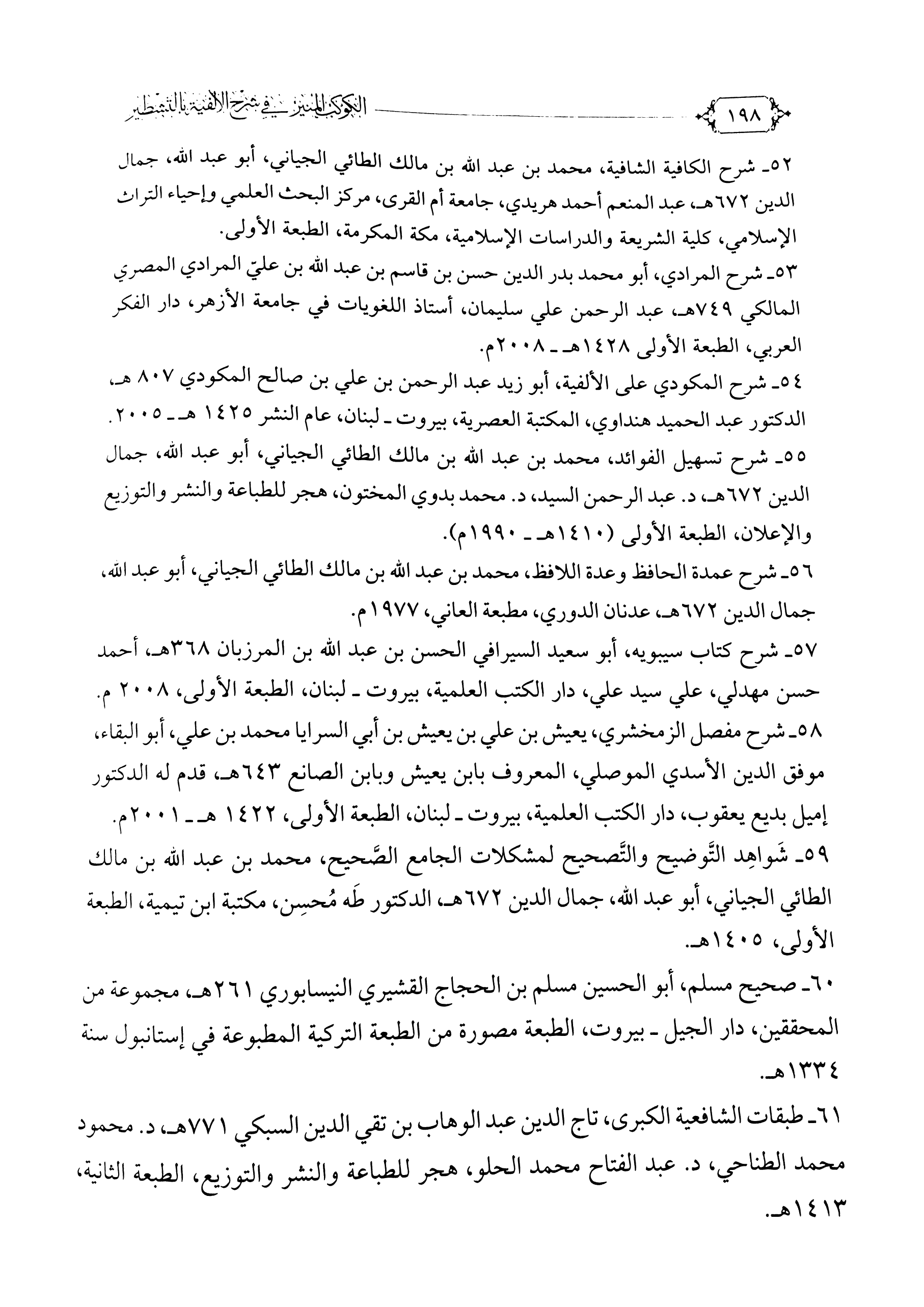 ٥٢. شرح الكافية الشافية، محمد بن عبد الله، ابن مالك الطائي الجياني، أبو عبد الله، جمال الدين ٦٧٢ هـ، عبد المنعم أحمد هريدي، جامعة أم القرى مركز البحث العلمي وإحياء التراث الإسلامي كلية الشريعة والدراسات الإسلامية مكة المكرمة، الطبعة الأولى.